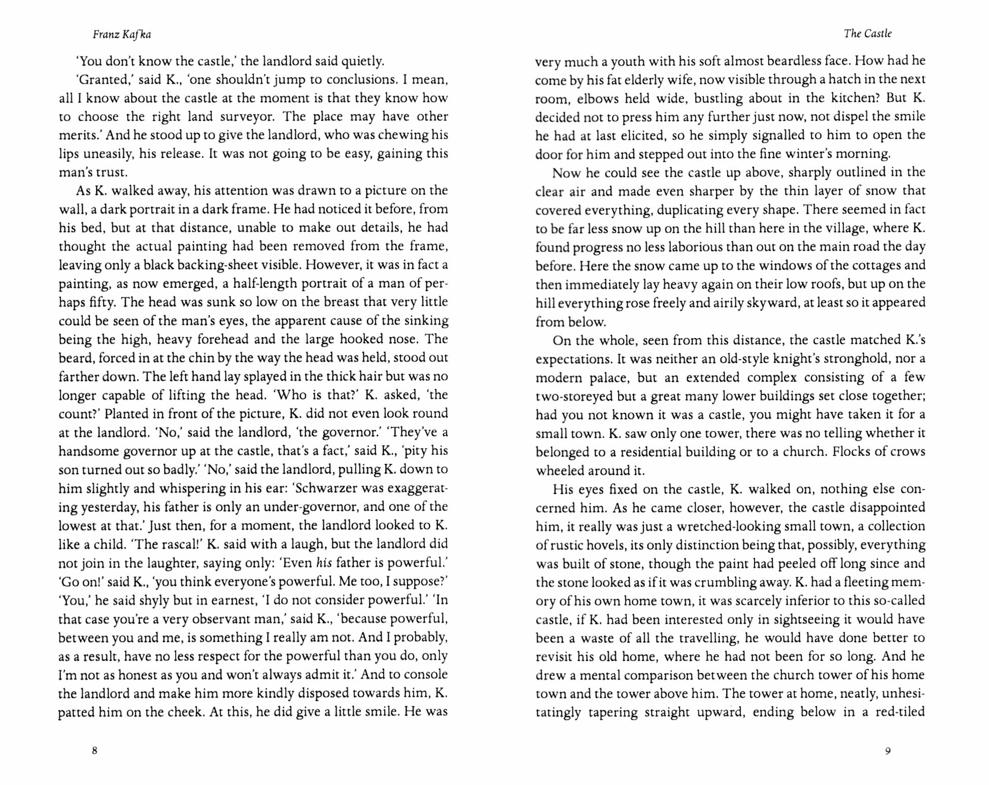 The Castle is the story of K., the unwanted Land Surveyor who is never to be admitted to the Castle nor accepted in the village, and yet cannot go home. As he encounters dualities of certainty and doubt, hope and fear, and reason and nonsense, K.'s struggles in the absurd, labyrinthine world where he finds himself seem to reveal an inexplicable truth about the nature of existence. Kafka began The Castle in 1922 and it was never finished, yet this, the last of his three great novels, draws fascinating conclusions that make it feel strangely complete.