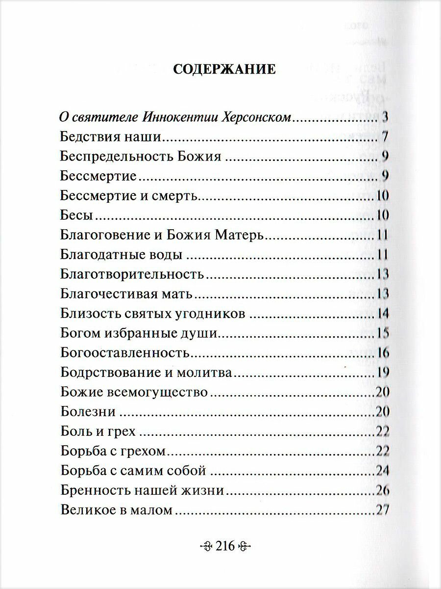 Данная работа представляет собой сборник изречений святителя Иннокентия Херсонского, касающихся всех сторон духовной жизни христианина; эти изречения взяты из творений святого и расположены в алфавитном порядке.