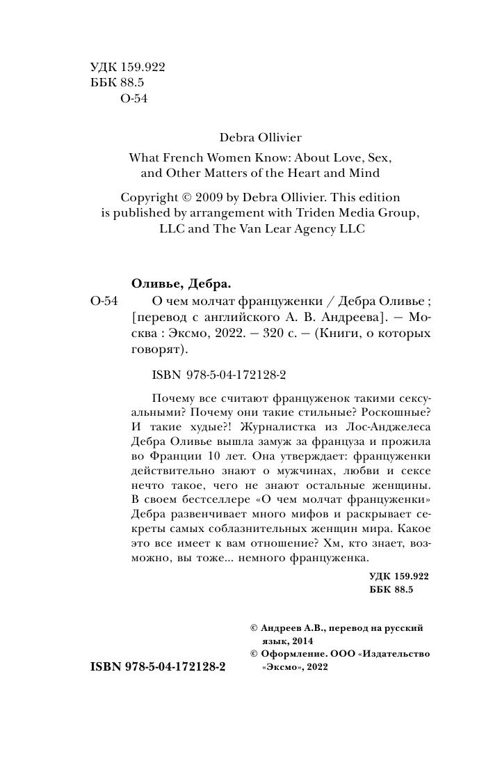 Книга: О чем молчат француженки (Дебра Оливье); Эксмо, 2022