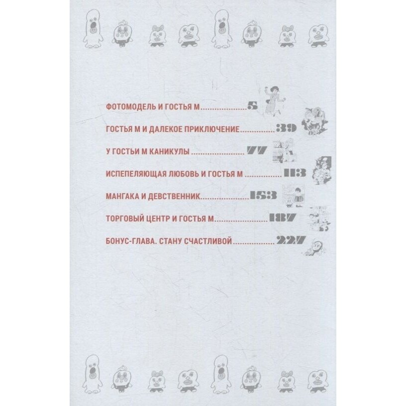 В предпоследнем томике гостьи М автор продолжает демонстрировать различные истории(как фэнтезийные, так и реальные) девушек, к которым раз в месяц приходит гостья. Интересно, что в данном томике нам добавили нового персонажа, что меня порадовало. Сюжеты не несут смысловой нагрузки и отлично подойдут, чтобы расслабиться и просто что-то почитать. Мне очень понравилась последняя история, остальные, к сожалению, таких восторгов не вызвали. В общем, жду не дождусь, когда куплю 4 том и завершу данную серию. Однозначно рекомендую браться, это того стоит.