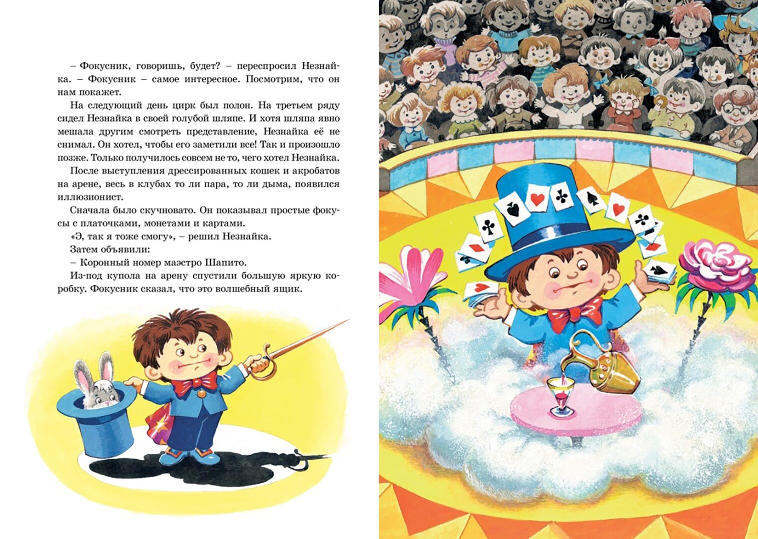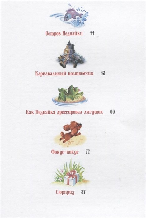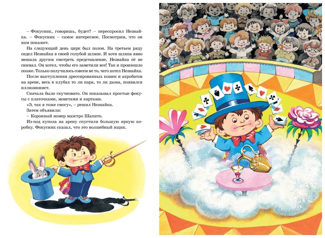 Любопытный озорник и неисправимый выдумщик Незнайка постоянно попадает в забавные ситуации: то застрянет в грибопроводе, то окажется на необитаемом острове. Весёлые приключения непоседливого малыша не дадут заскучать и мальчишкам, и девчонкам. Истории о проделках Незнайки увлекательные и поучительные. Они поднимут настроение даже в самый грустный денёк и расскажут ребятам, почему нельзя врать, лениться и как важно доводить дело до конца.