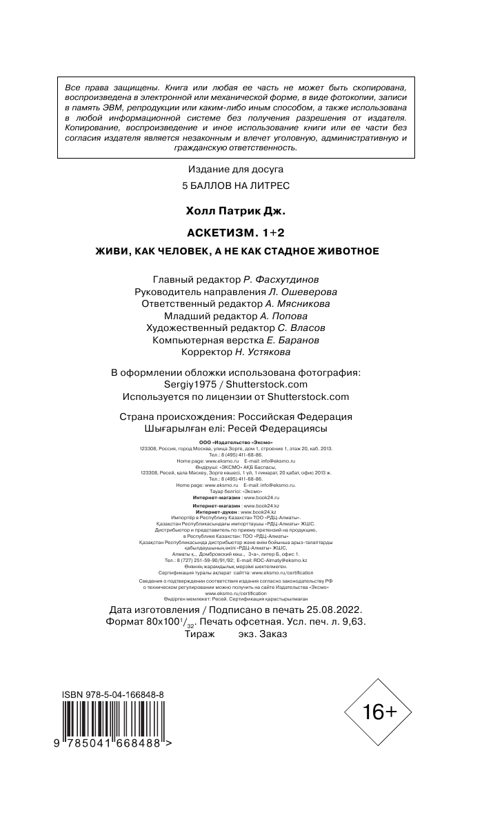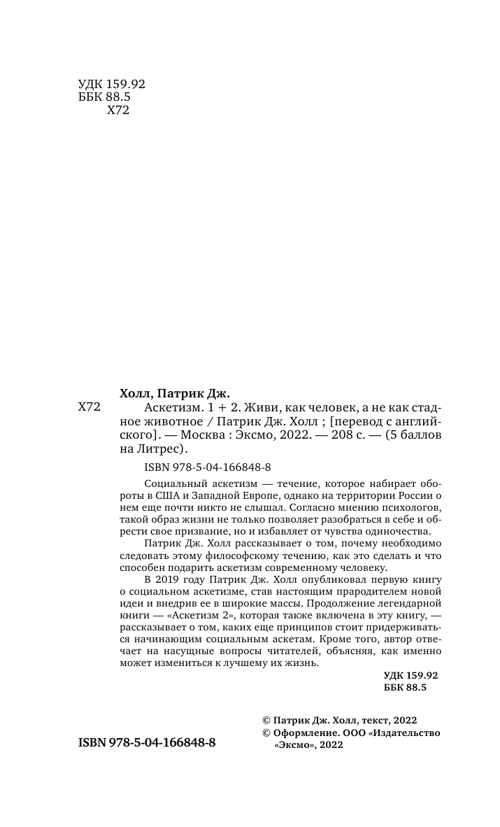 Аскетизм. Живи как человек а не как стадное животное (1+2 две книги в одной) (Холл Патрик Дж.); ООО "Издательство "Эксмо", 2022