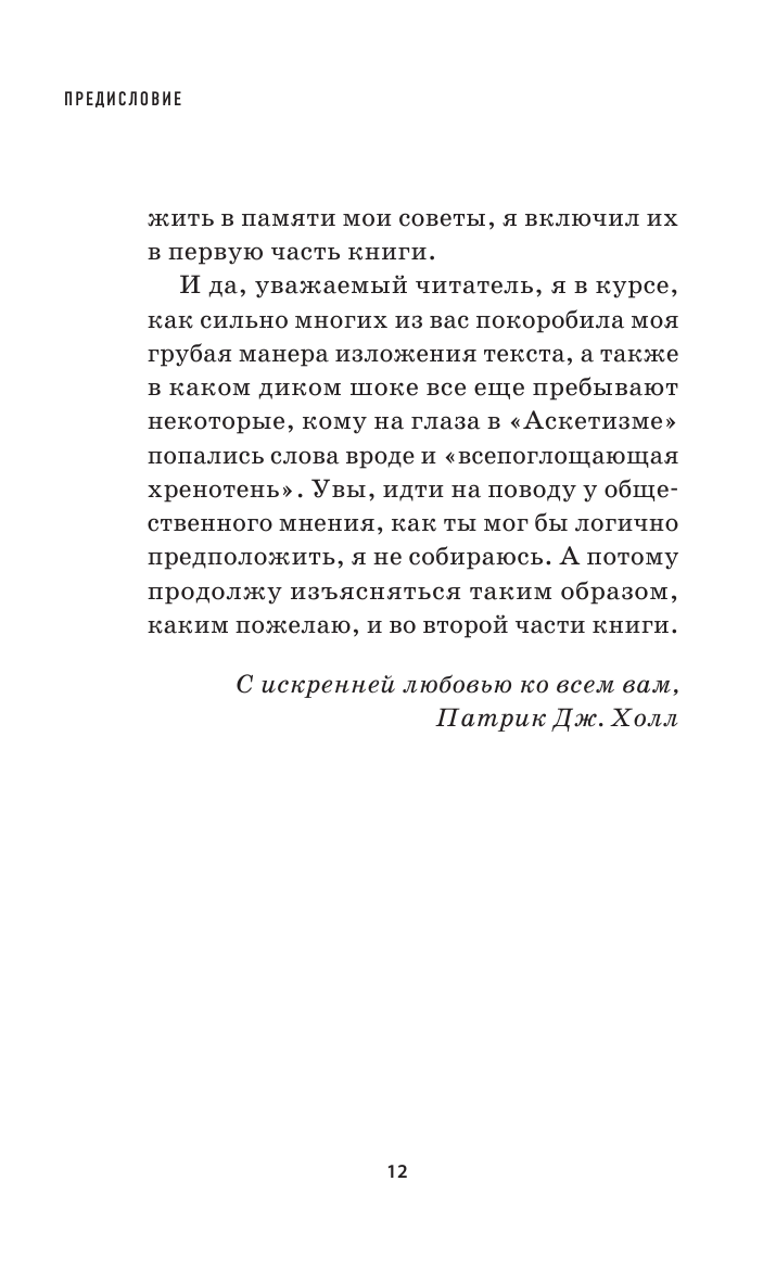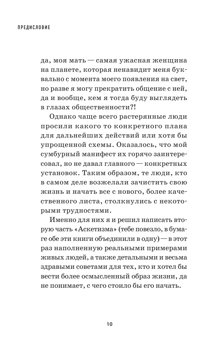 Знаешь, почему книга называется «Аскетизм 1+2»? Потому что под одной обложкой мы объединили сразу две работы Патрика Дж. Холла — «Аскетизм» и «Аскетизм 2», которые уже набрали феноменальную популярность в интернете.