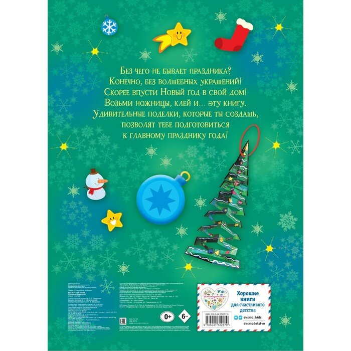 В то же этой книге есть все для подготовки к новому году, а увлекательные задания будут интересны как младшим школьникам и дошколятам, так и детям постарше- вырезание, склеивание, сгибание и оригами- дети попробуют разные техники и на выходе получат интереснейшие новогодние украшения!