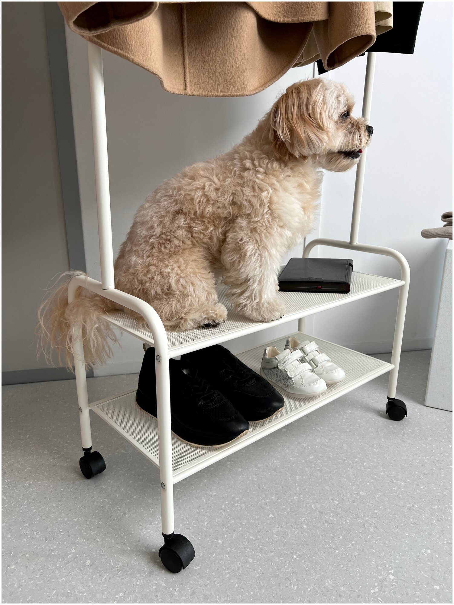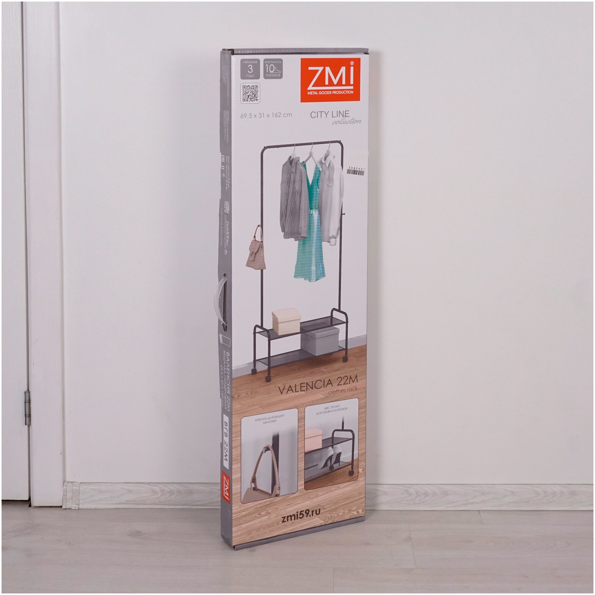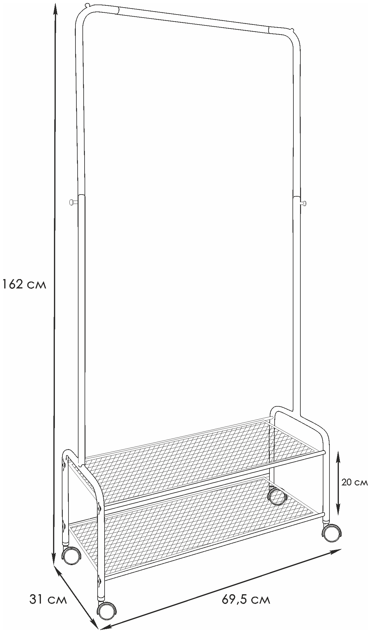 Напольная вешалка - рейл ЗМИ с двумя полками на колёсах 162 х 69 х 31. Hoff Валенсия