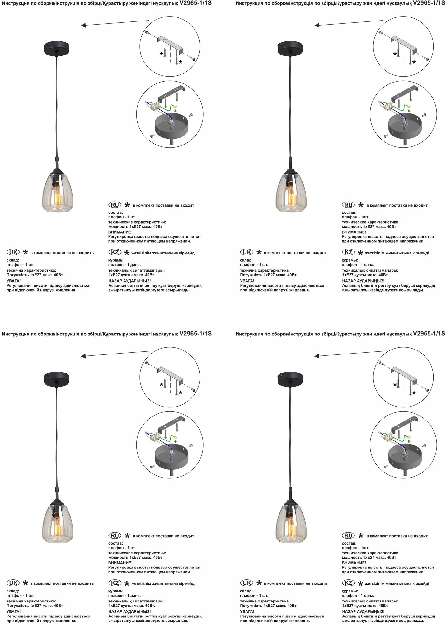 | Тип светильника | подвес |