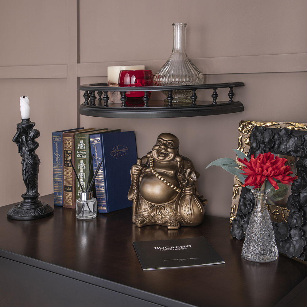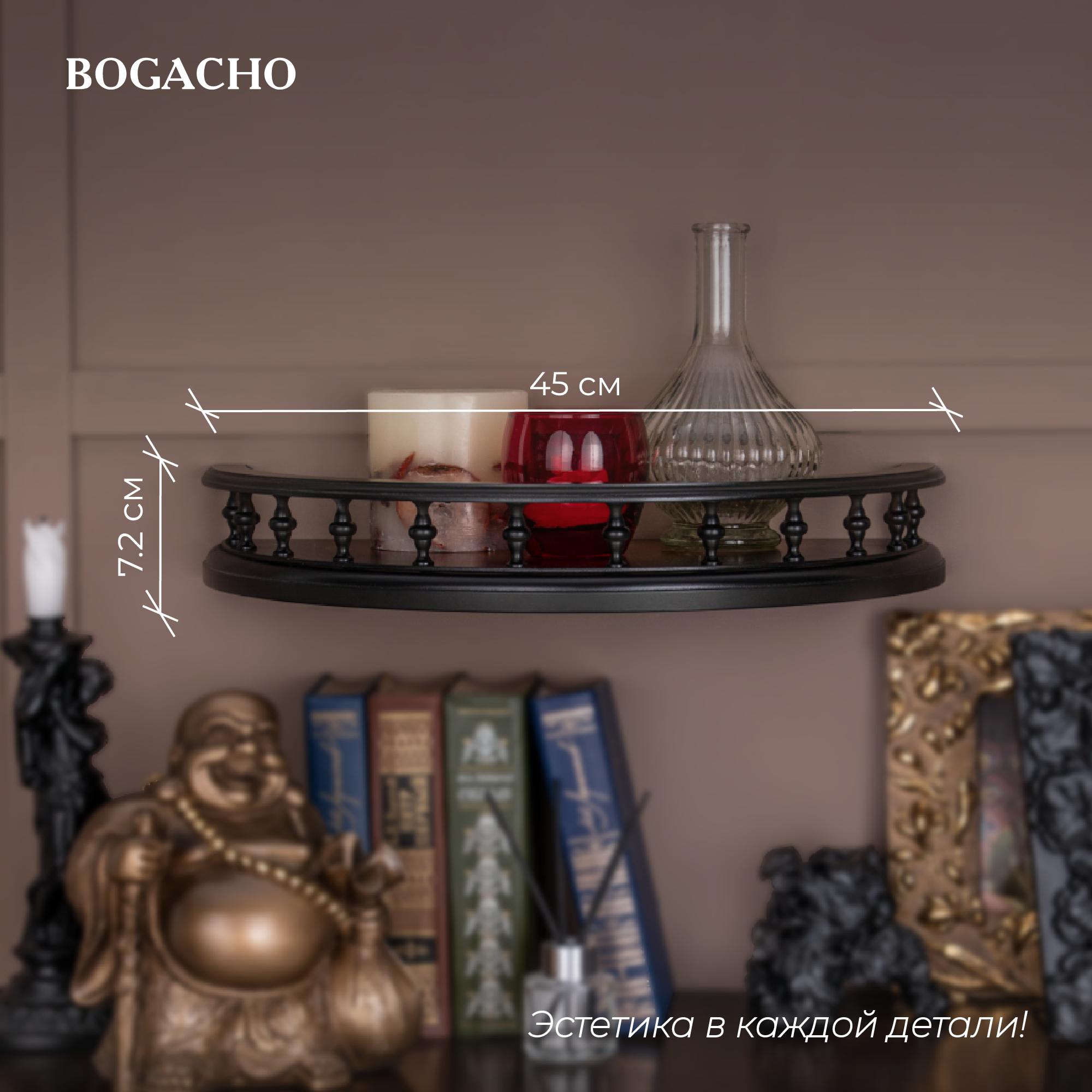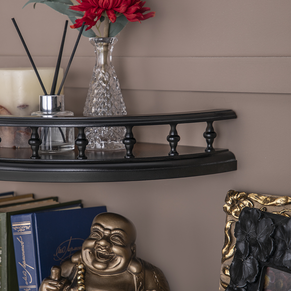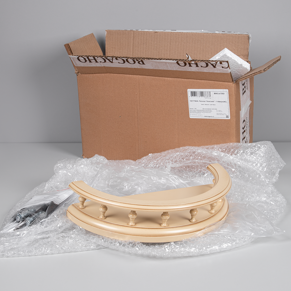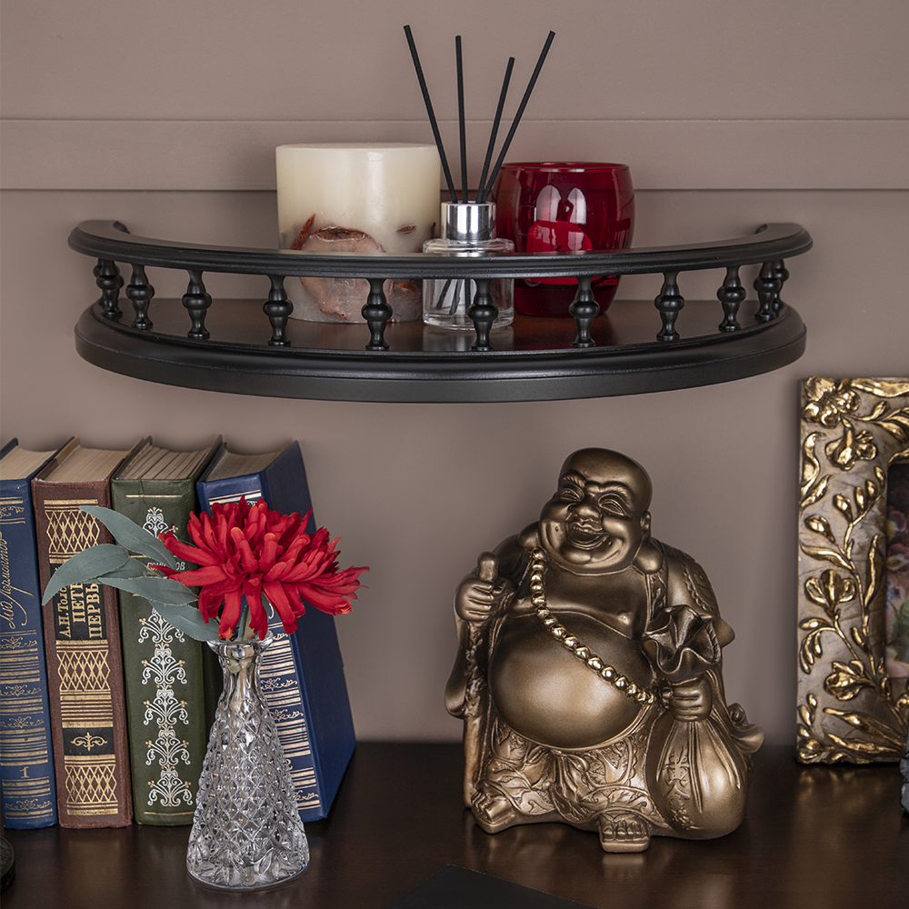 Полка полукруглая настенная с бортиком ограничителем, который снижает риск падения предметов с поверхности полки. Полка Классика станет отличным дополнением прихожей, спальни, кухни или гостиной. Полка изготовлена из МДФ, крепится на пластмассовые направляющие с металлическим стержнем. Глубина полочки 22 сантиметра.