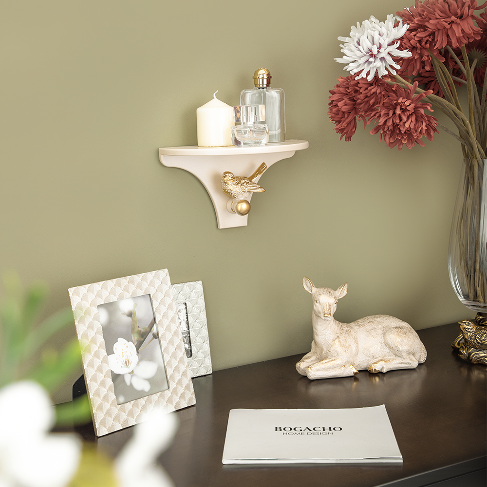 Полочка выполнена из мдф. Декоративные детали выполнены с использованием ручного труда.