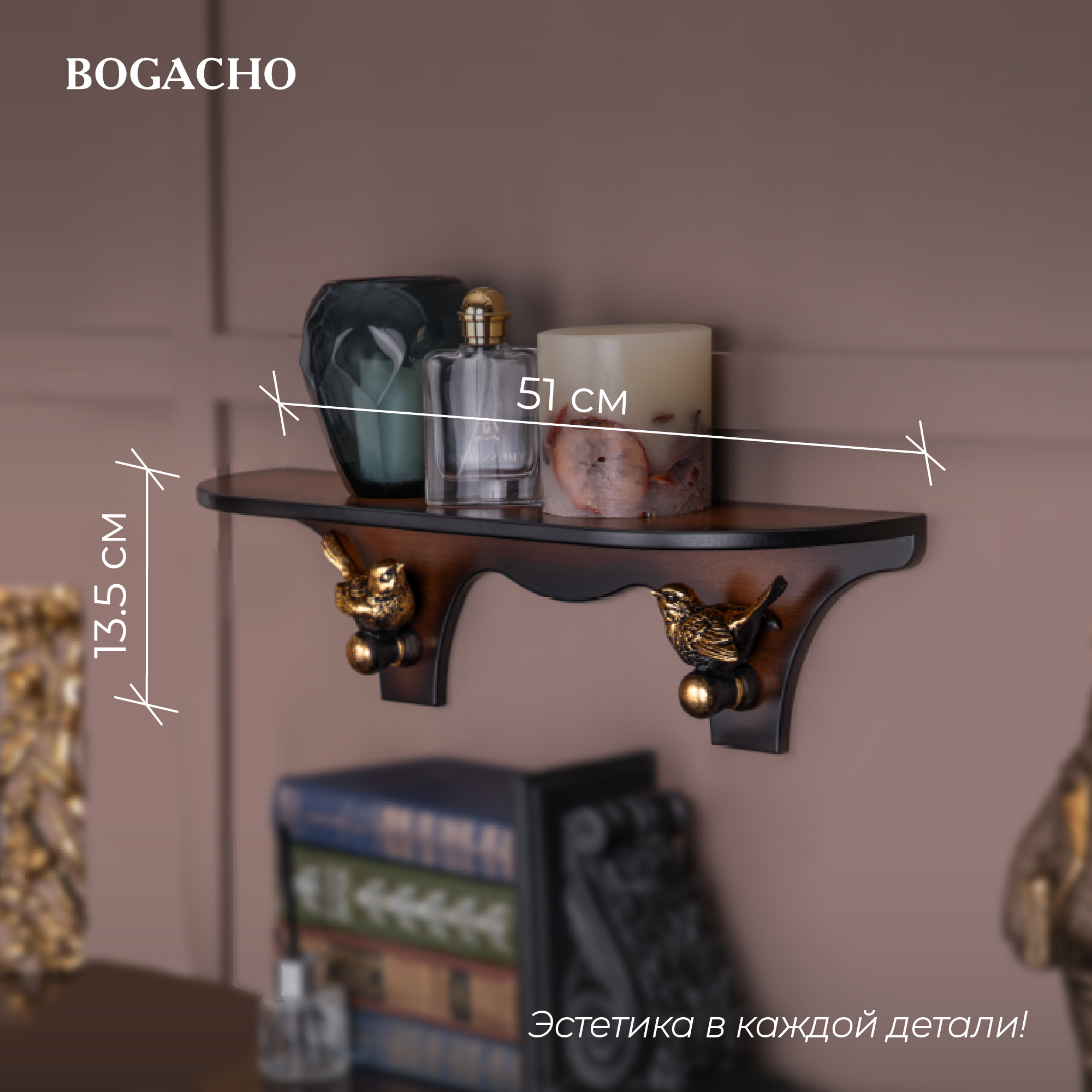 Полка BOGACHO Гармония средняя Орех Hoff