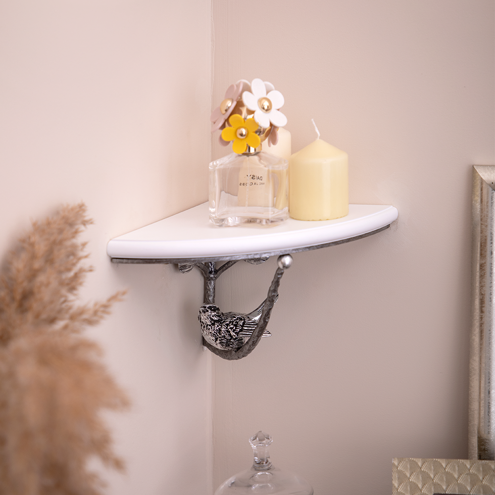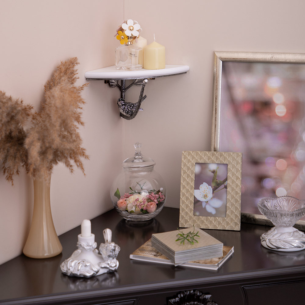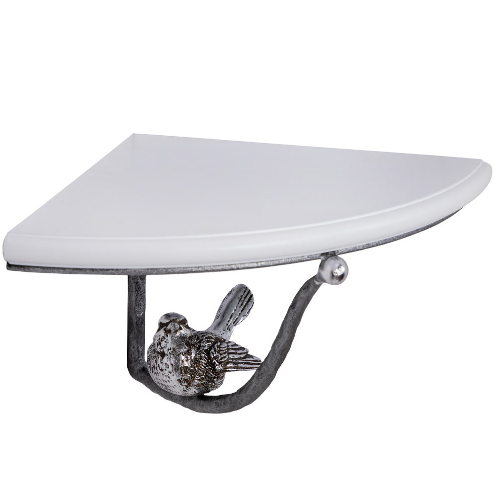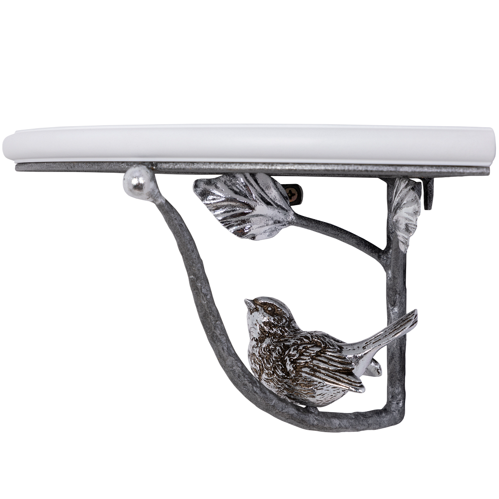 Угловая настенная полка Bogacho Терра Нота 21 см бежевого цвета на металлическом бежевом кронштейне со скульптурой птички из мрамора Hoff