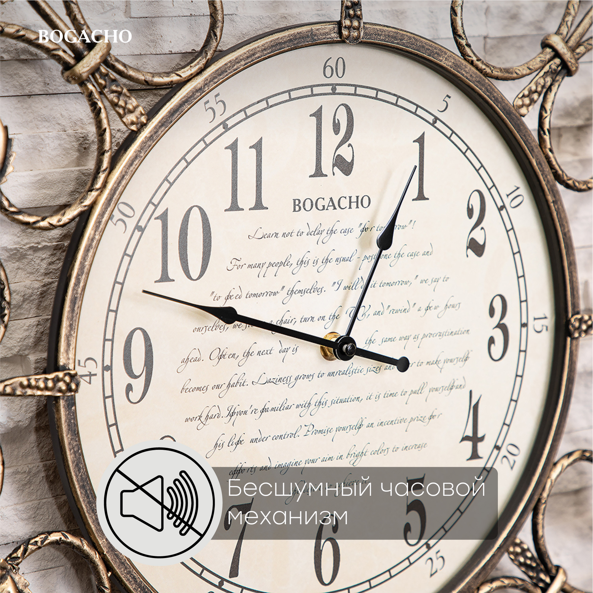 Настенные часы BOGACHO - это предмет интерьера изящного искусства и высочайшего качества. Большие настенные часы - это стильный декор для дома и уюта. Интерьерные часы подойдут в любое пространство жилой зоны квартиры или дачи (часы в спальню, в прихожую, в гостиную, в детскую, в зал, на кухню). Также оригинальные часы можно использовать как украшение на стену, настенное панно. Механические настенные часы - это оригинальный подарок маме, на новый год, рождество, подруге, мужчине, девушке, папе, на день рождения, бабушке, мужу, женщине, сестре, на день матери, на годовщину, на 14 февраля, новоселье. Данный аксессуар для дома подойдет для интерьеров в стиле лофт, сканди, минимализм, эклектика, романтизм. Бесшумные часы могут выступать как сувенир, новогодний подарок или подарок женщине на 8 марта.