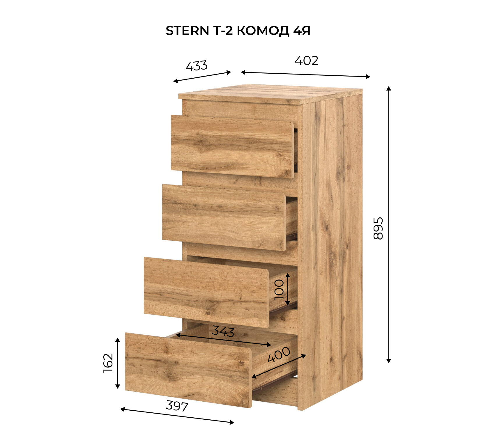 Комод 4 ящика Дуб Сонома Hoff STERN