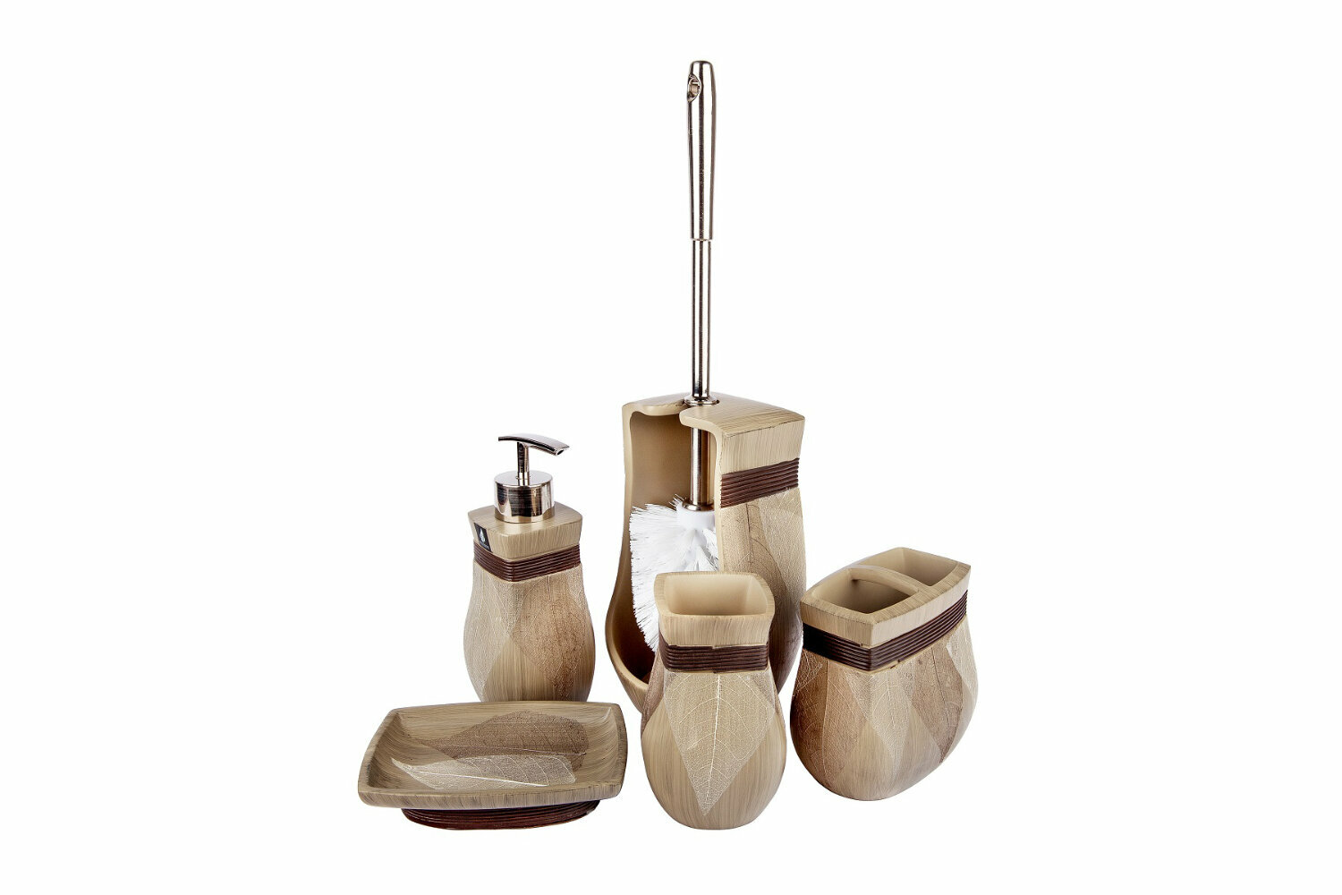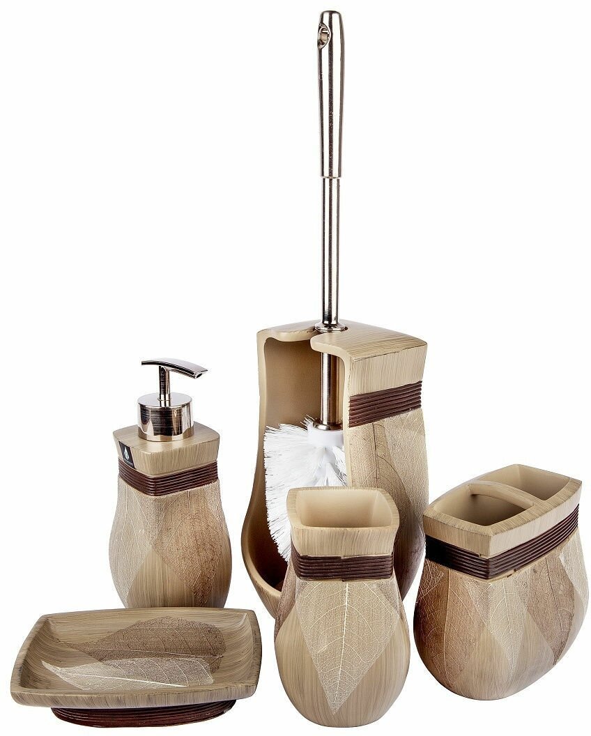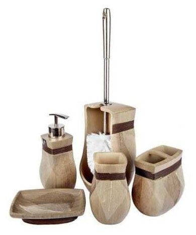 Ерш сантехнический напольный коллекции Прима Верде изящно впишется в любой интерьер. Туалетный ерш для ванной комнаты выполнен из полирезина и имитирует древесную породу с текстурными листьями. Ёрш для унитаза отлично справляется со своей задачей - поддержанием чистоты в туалете, а необычный дизайн создает эстетичный внешний вид. Комфортное использование, эстетика, и удобство -это основные плюсы от использования напольного ершика для унитаза. Изделие включает в себя ерш для чистки унитаза с пластиковой ручкой и полирезиновую подставку. На ручке ерша конструкцией предусмотрена крышка, которая эстетично скрывает щетку для чистки унитаза. Щётка для унитаза имеет густой жесткий ворс, обладает высокой стойкостью к истиранию. Ёршик с крышкой туалетный выполнен современного полимерного материала-полирезина. Ерш напольный из полирезина предназначен для использования в помещениях с повышенной влажностью, не трескается со временем и не требует специального ухода. В наборе аксессуаров для ванной комнаты Прима Верде представлены: дозатор для мыла, мыльница настольная, ершик для унитаза, стакан для зубных щеток, подставка для зубных щеток. Соберите всю коллекцию или комбинируйте аксессуары так, чтобы придать вашему интерьеру завершенность и неповторимый дизайн. Эстетика имитированного дерева и комфорт современного материала переплетены в надежности и красоте коллекции Прима Верде. Благородная расцветка натурального дерева, бархатистая поверхность и функциональность это то чего достойна ваша ванная комната.
