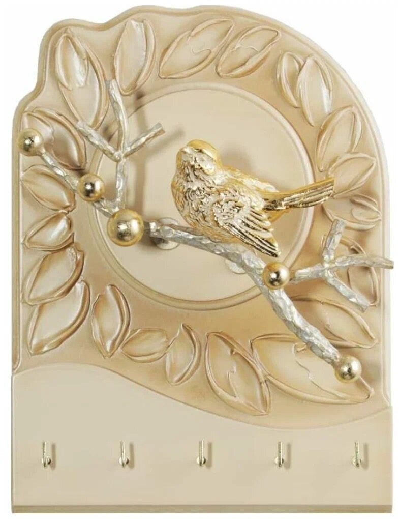 Настенная деревянная полка-ключница для ключей Bogacho Птичка Терра (мини) белая 5 крючков Hoff Птичка Терра мини