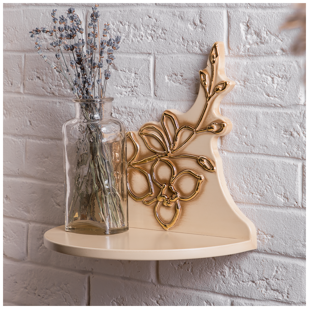 Настенная деревянная полка Bogacho Орхидея Каттлея кремовая ручная работа Hoff