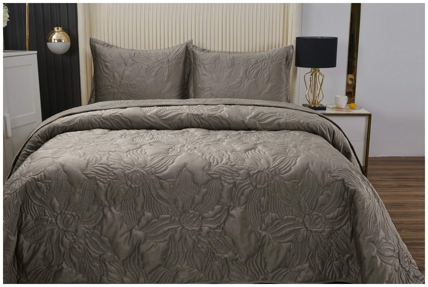 Комплект с покрывалом Sofi De MarkO Элис 230 х 250 см коричневый Hoff (размер: евростандарт)