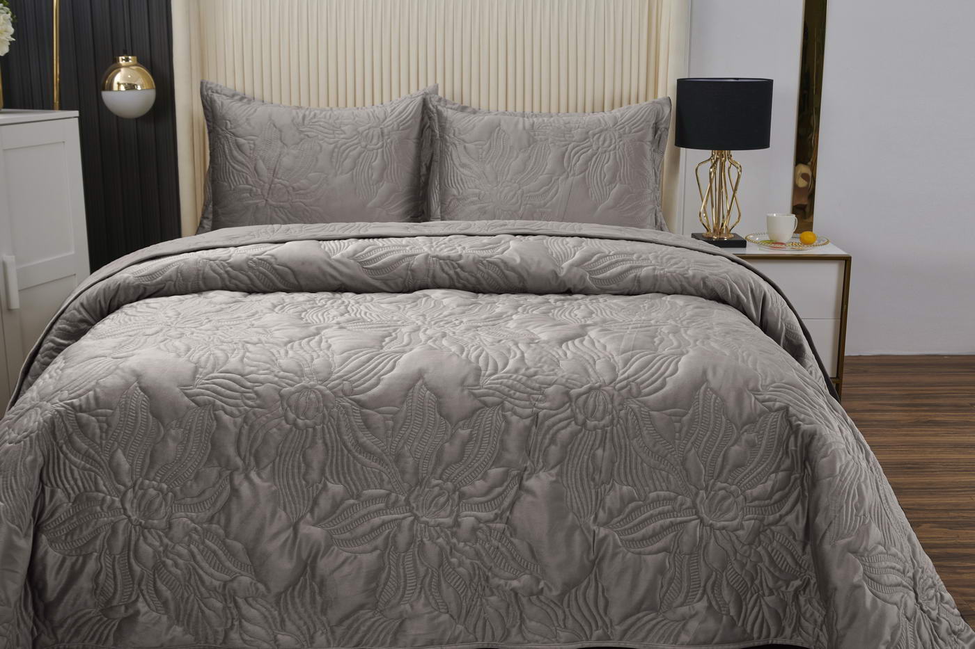 Велюровое покрывало Элис – это прекрасный подарок, который можно сделать своему дому. Изделие приятное на ощупь, декоративная строчка в виде цветов орхидеи подчеркивает утонченность покрывала. Благодаря особому плетению, велюровая ткань отражает свет и красиво переливается при разном освещении. Изделия из велюра хорошо сохраняют тепло и дарят чувство комфорта. За изделием легко ухаживать: стирка при температуре не выше 30 градусов, вручную или в машинке. Важно хорошо просушить! При правильном уходе вещь прослужит долгие годы, не потеряв форму и цвет.