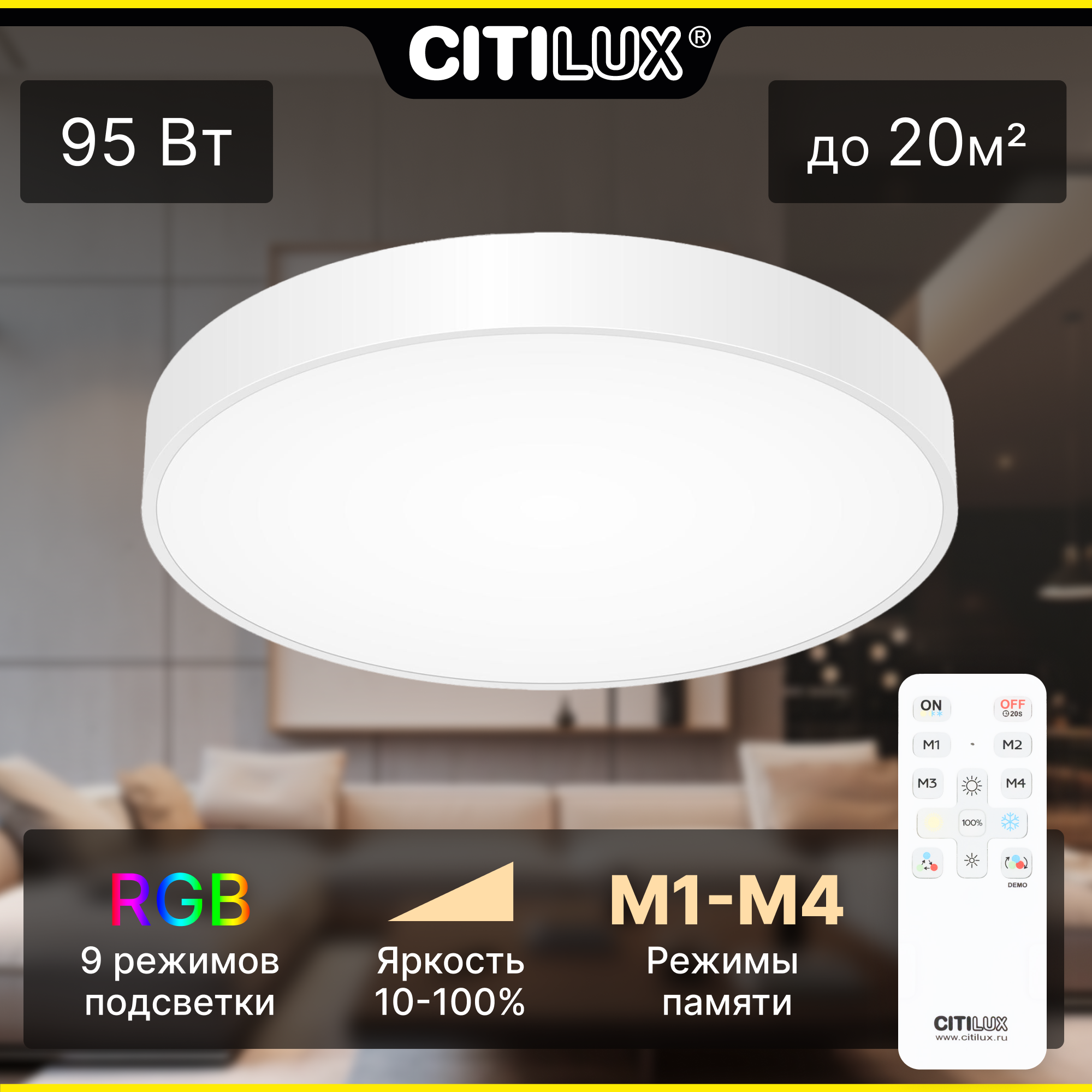 - Cовременные светодиодные светильники CITILUX Купер CL724 с RGB подсветкой и пультом