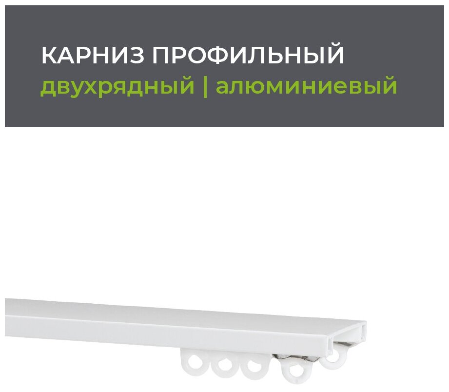 | Состав комплекта | 2-рядная шина - 1 шт., глайдер - 40 шт., крючок для глайдера - 44 шт., стопор - 4 шт., набор крепежа для потолочного крепления (саморезы с дюбелем) - 3 шт. |