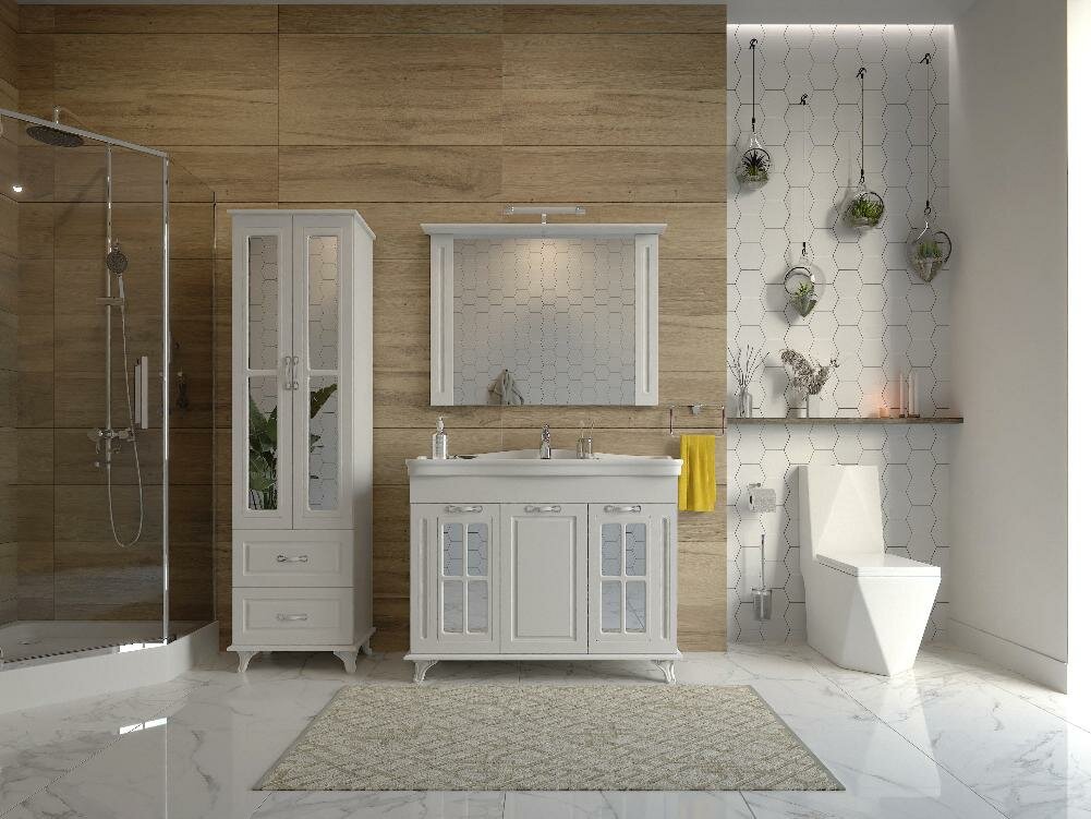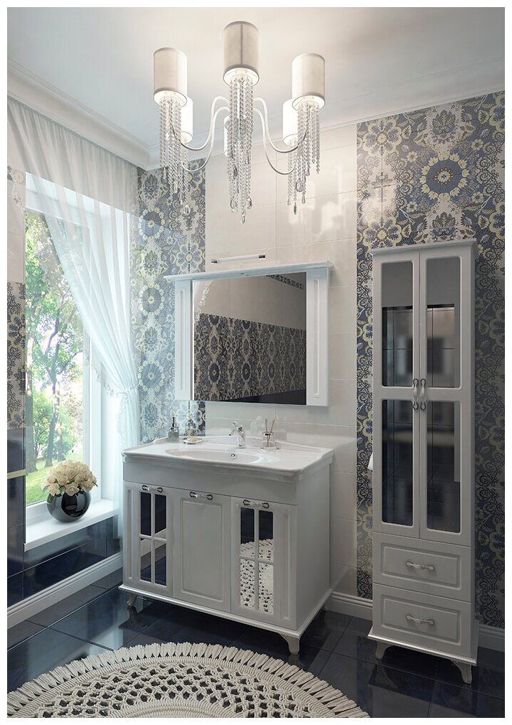 Giovanni-один из самых раскошных комплектов мебели для ванной комнаты. Он станет настоящим украшением интерьера. Витражные стекла, белоснежный цвет, изящная фрезеровка-это определенное исключение из правил повседневности.