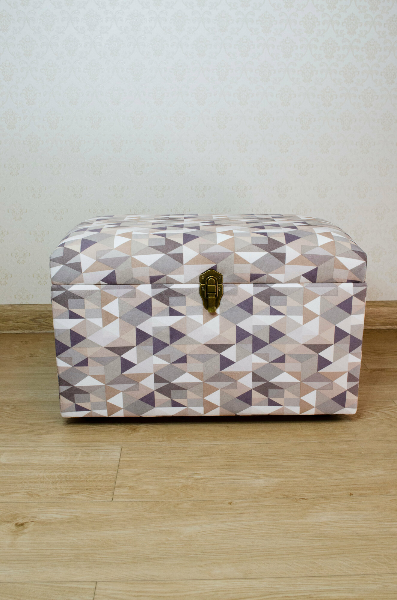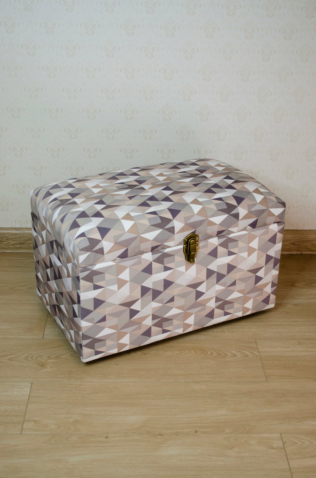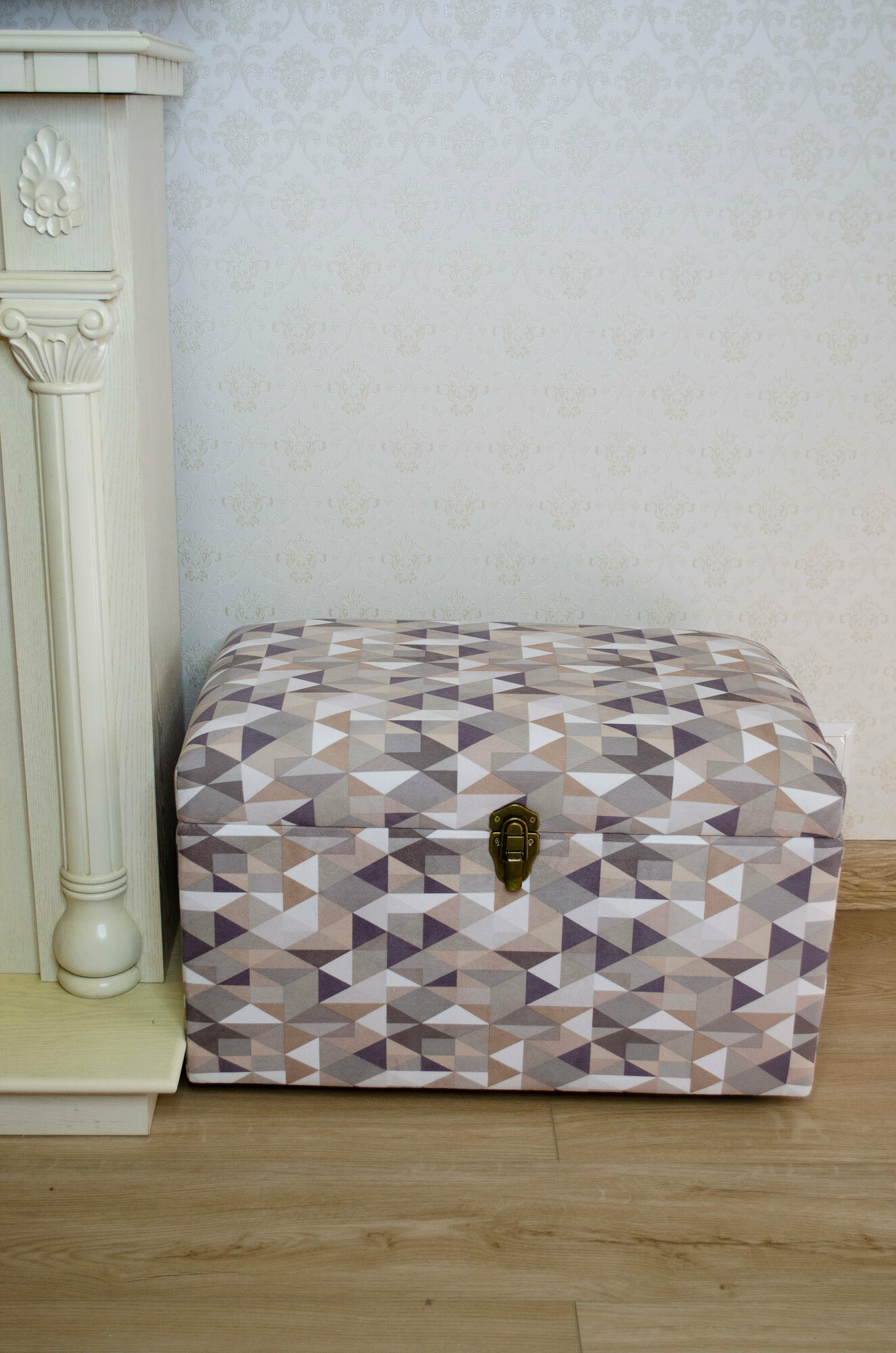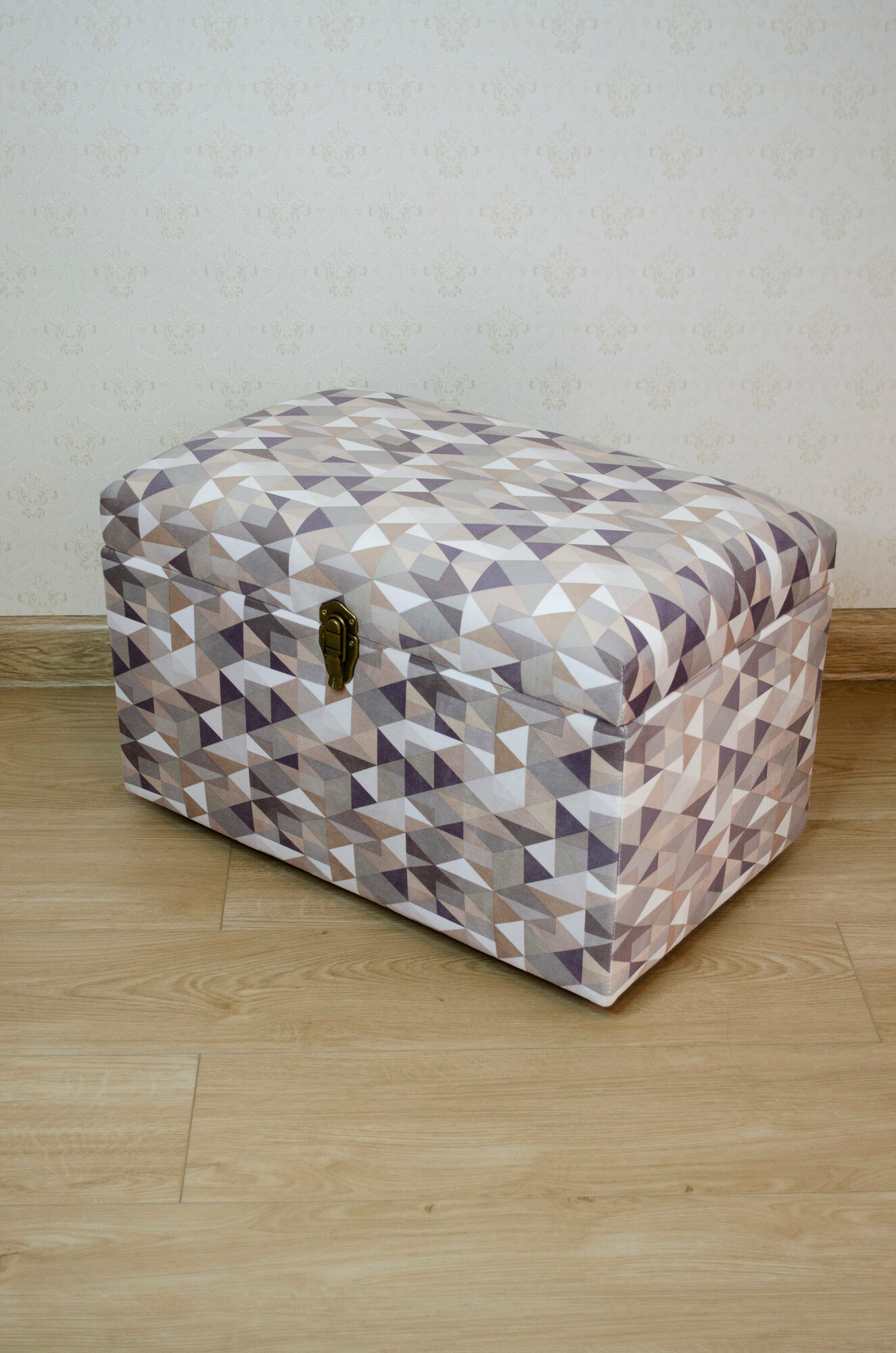 Сундук Геометрия из материала фанера, микровелюр, поролон, спанбонд, синтепон, металл, пластмасса в цвете «серый, бежевый, оливковый».