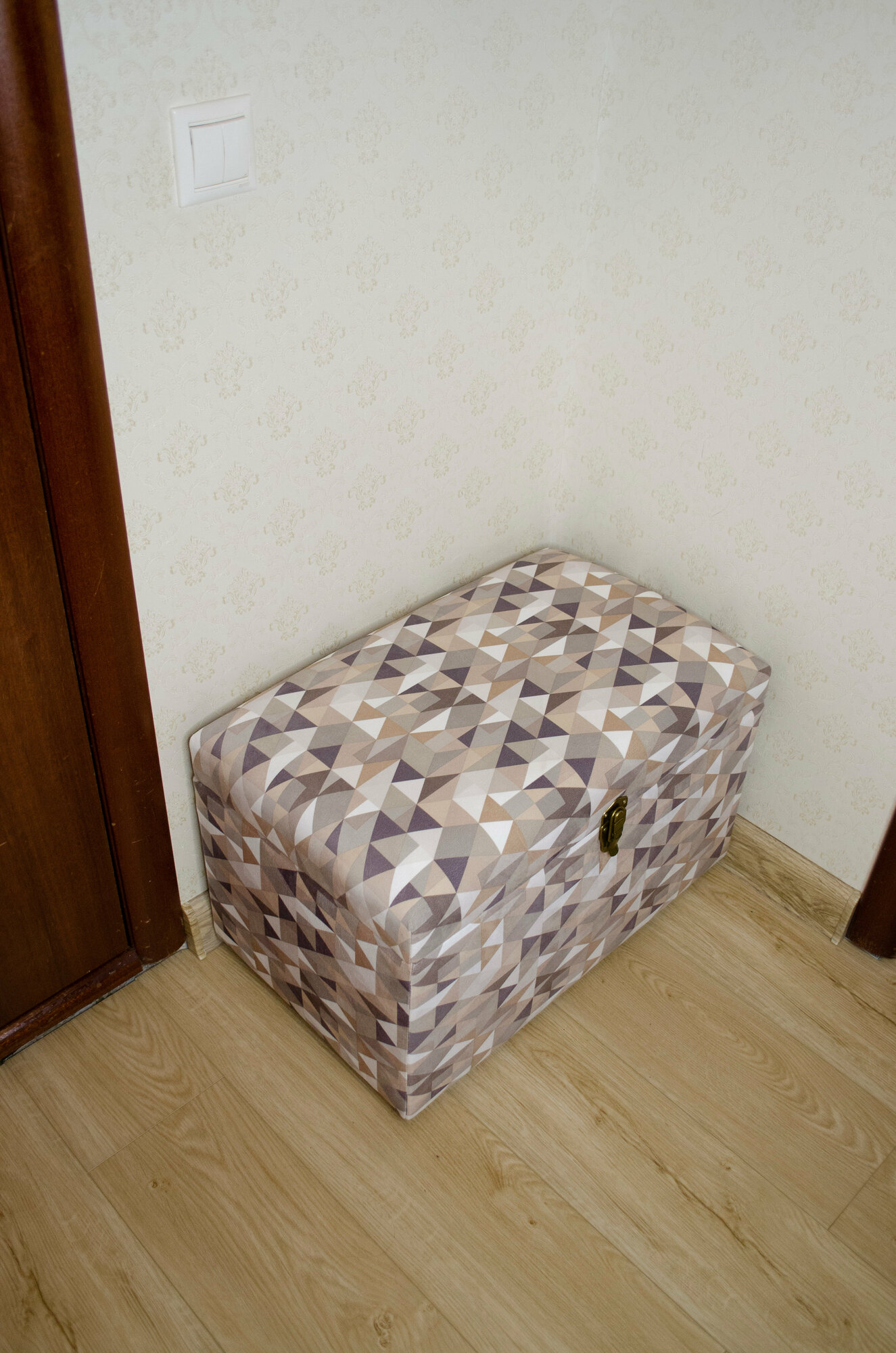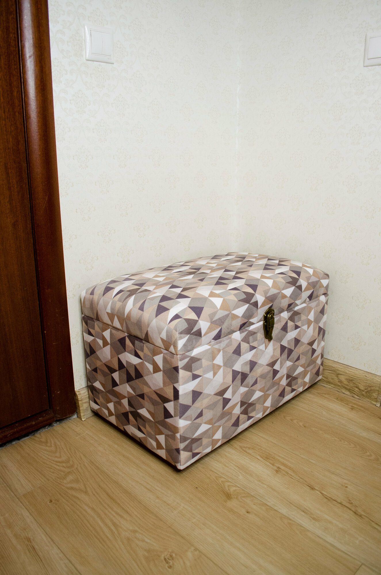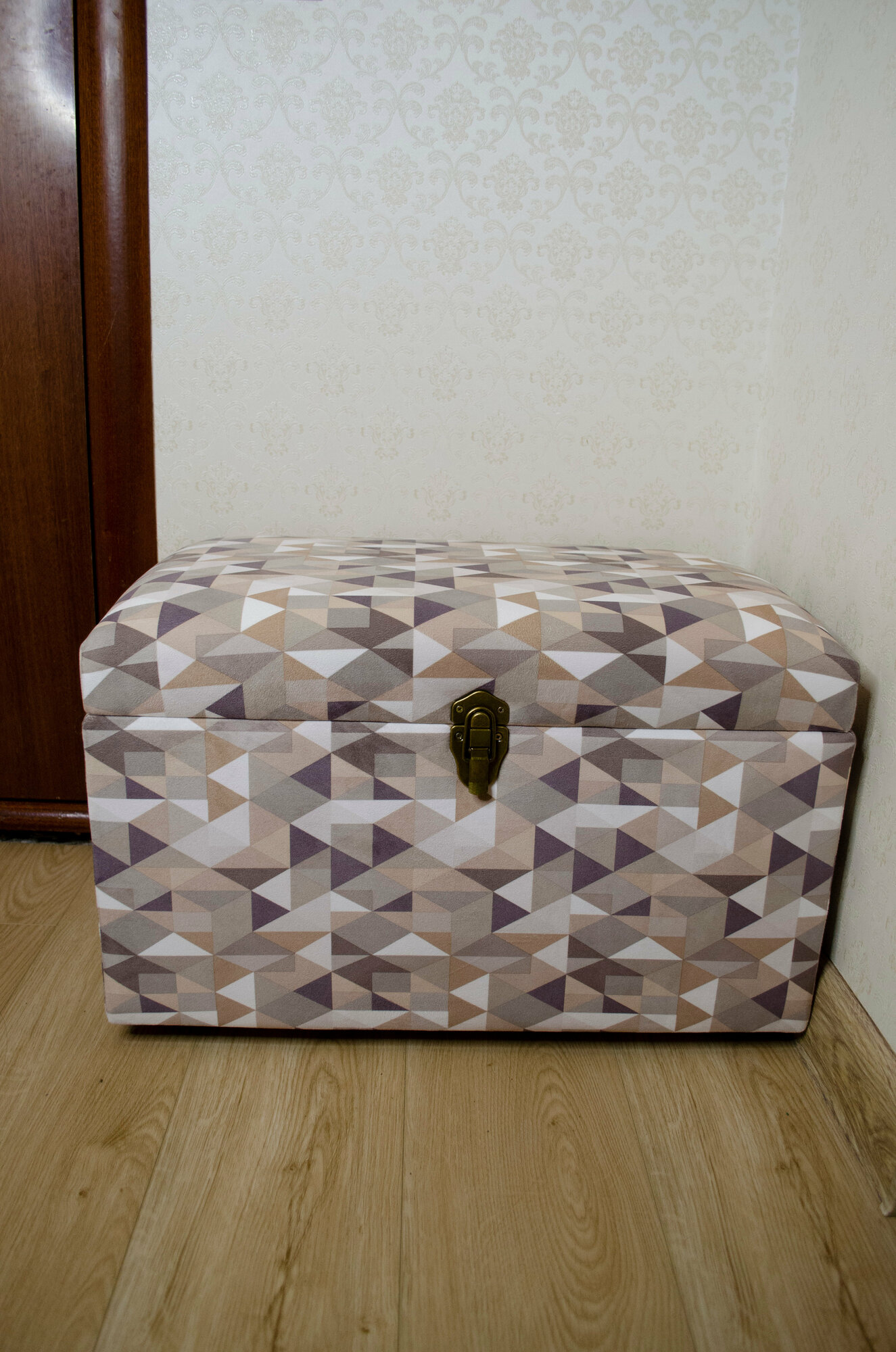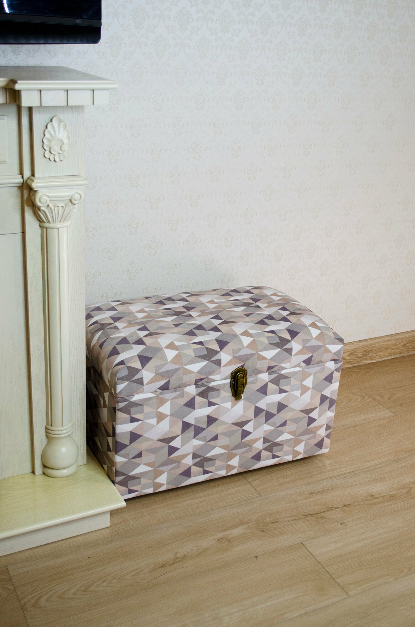 Сундук Геометрия из материала фанера, микровелюр, поролон, спанбонд, синтепон, металл, пластмасса в цвете «серый, бежевый, оливковый».