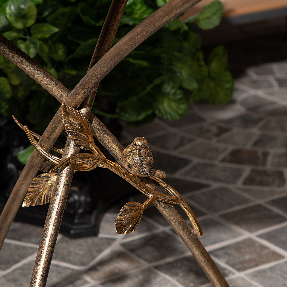 Декоративный столик BOGACHO Зарнички Санфлауэр золотистый, со стеклянной столешницей и основанием из кованой стали (ручная работа) это оригинальный дизайн, изысканность и высочайшее качество исполнения. Он выполнен вручную, что делает его уникальным, единственным в своем роде!Большой цветок и маленькие птички на нем этот образ во все времена нес в себе положительную энергетику. Коллекция Зарнички - дань той красоте, которой щедро окружает нас природа, экостиль, столь популярный в последнее время.Наполните образ своего дома оригинальностью и неповторимостью вместе с эксклюзивными изделиями BOGACHO.