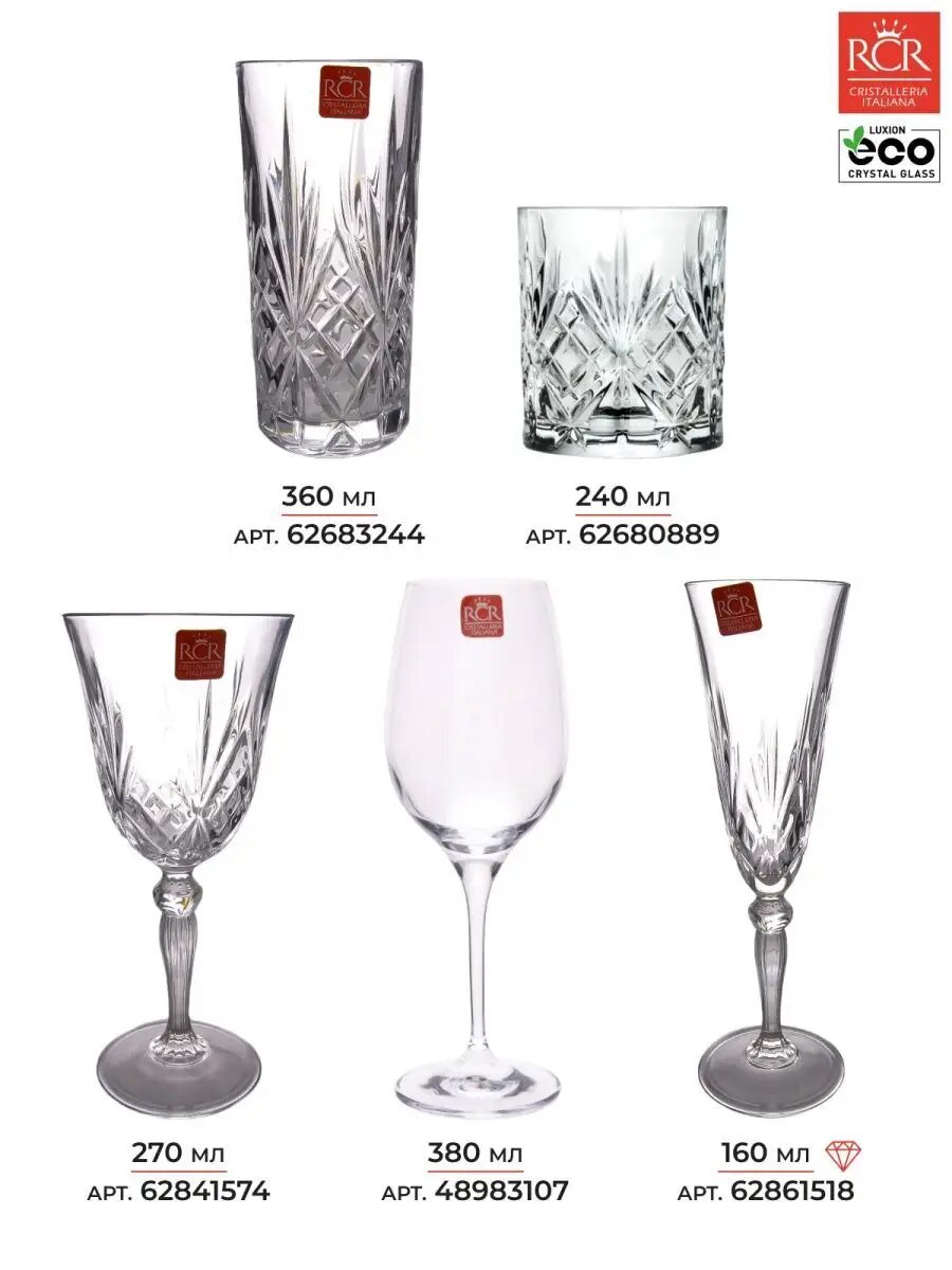RCR Cristalleria Italiana - один из крупнейших производителей премиальных бокалов и посуды из стекла в Италии. Компания появилась в 1967 г. в результате слияния группы стеклодувных мастерских, работавших с хрусталем с начала ХХ века. Благодаря высочайшей художественной эстетике и безупречному качеству изящные бокалы и фужеры, сияющие вазы, графины и блюда RCR завоевали сердца европейских поклонников хрусталя, а некоторые изделия стали по-настоящему культовыми.Бокалы RCR придадут благородства и изящности как романтическому вечеру, так и любому празднику, ведь подача напитка в искусно сделанной посуде подарит эстетическое наслаждение каждому гостю. Характеристики: Бренд: RCR;Объем: 160 мл;Материал: хрустальное стекло;Диаметр: 70 мм;Цвет: прозрачный. Преимущества: Элегантные и современные формы;Полностью бесцветны;Не вступают в реакцию с напитком и устойчивы к повреждениям;Все изделия данной коллекции проходят тщательную отборку и контроль качества: они сертифицированы и безопасны для ежедневного использования.Благодаря современным технологиям производства кристальная прозрачность и потрясающий блеск посуды сохраняется многие годы, а нежный звон бокалов воистину неповторим.