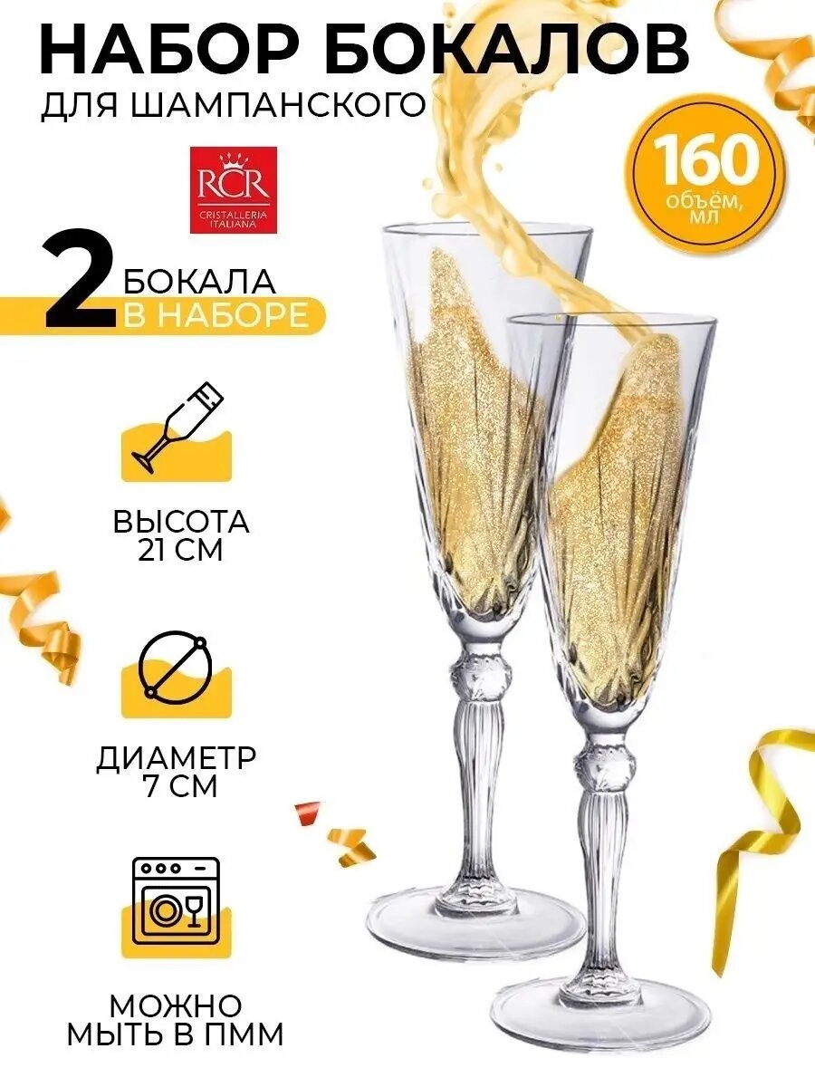 Бокал RCR Melodia для шампанского 160 мл 2 шт. бесцветный