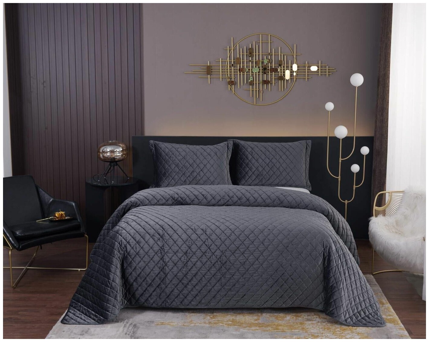 Велюровое покрывало "Натаниэль" антрацит 160х220 Hoff (размер: 1.5-спальный)