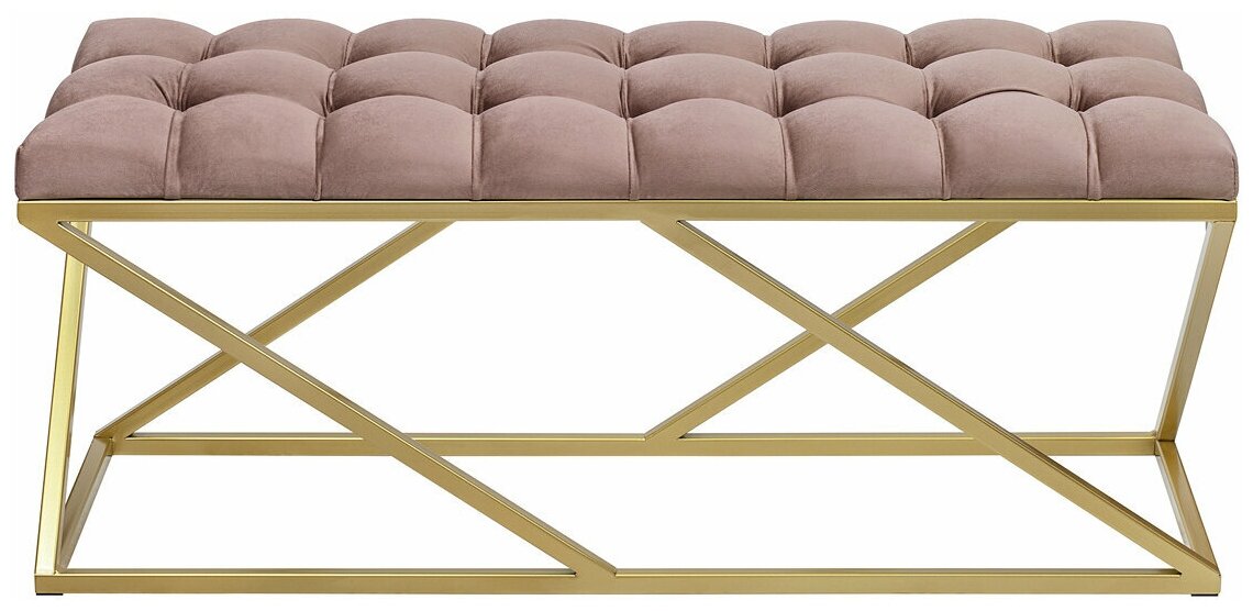 Банкетка ZUMA с золотым основанием и мягкой велюровой подушкой с каретной стяжкой. Размеры банкетки: 1100 х 400 х 450 мм. Стальной каркас изготовлен из профильной трубы 20х20. Стильная банкетка-пуф без спинки с мягким сидением подойдет для прихожей, спальни, гостиной, кухни и кабинета. Отлично будет смотреться в качестве прикроватной банкетки для дома. Можно разместить в офисе, зале, салоне, фотостудии, гостинице, баре, клубе, кафе и ресторане. Доставляем банкетку в собранном виде в надежной упаковке.
