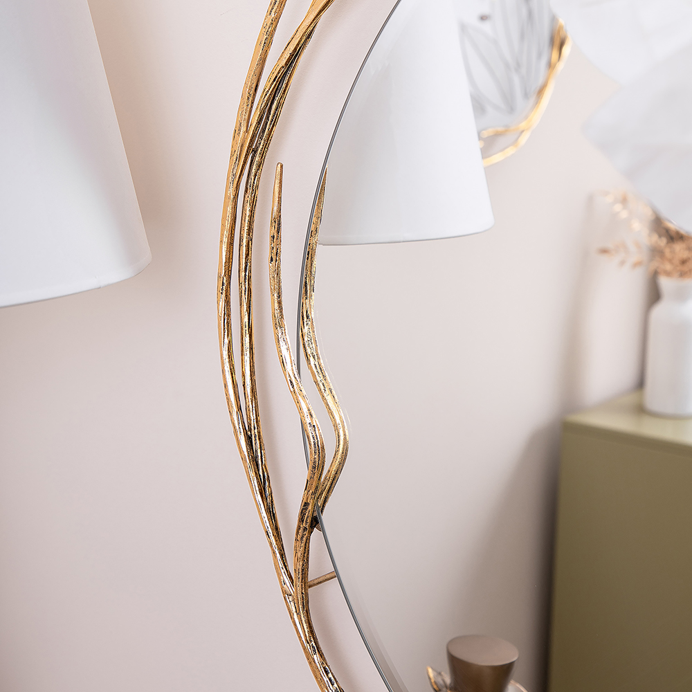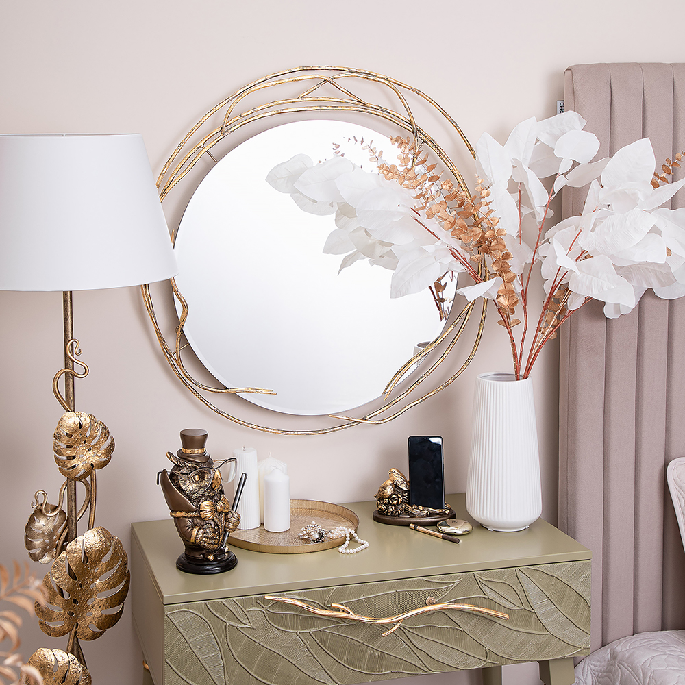Зеркало в круглой раме Арт деко с нежным природным орнаментом. На заказ по каталогу.
