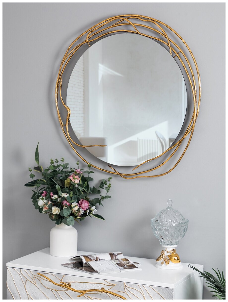 - Зеркало в круглой раме Арт деко с нежным природным орнаментом. На заказ по каталогу.