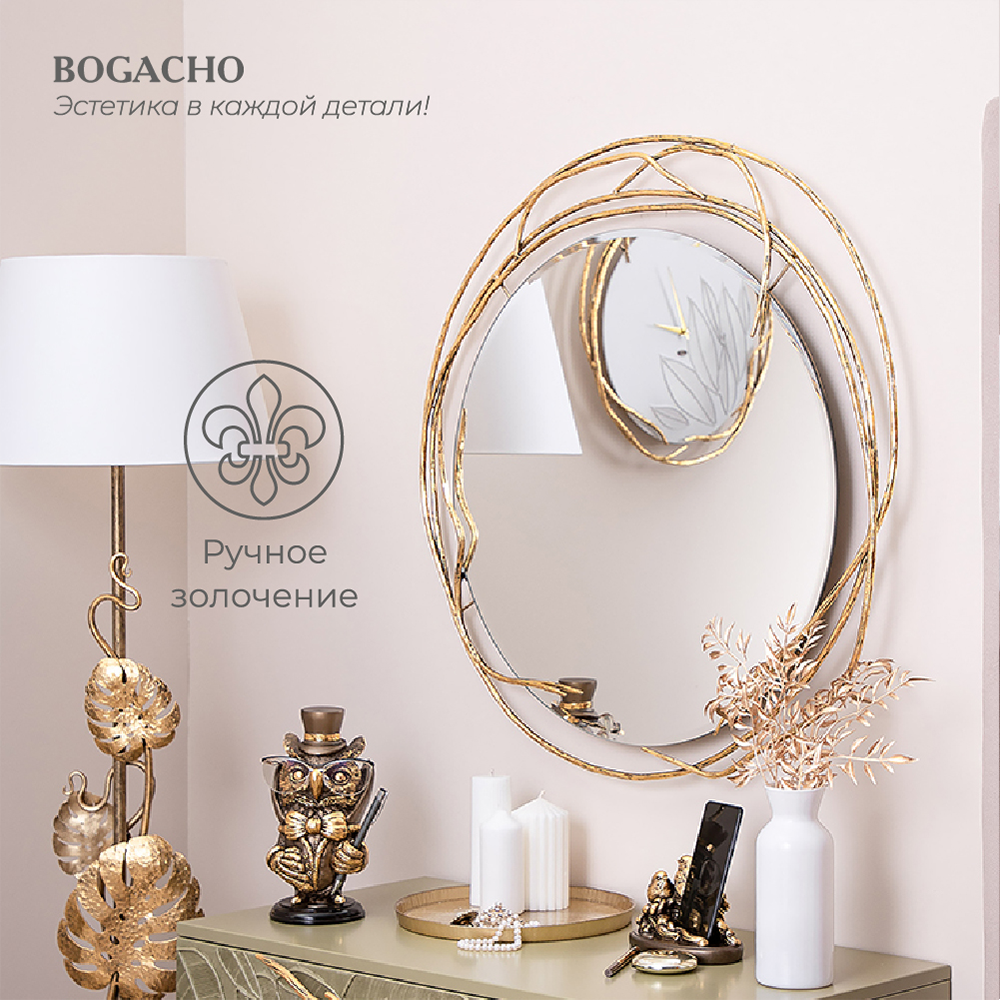 Настенное зеркало Арт от российской фабрики мебели BOGACHO - это эффектный предмет интерьера. Он позволит создать в вашем доме изысканную обстановку. Сегодня зеркало большое является неотъемлемой частью стиля комнаты и офиса, кафе или ресторана. Зеркало настенное можно разместить в любой комнате дома. Оно гармонично будет смотреться в классическом интерьере. Украсит интерьер в стиле лофт или скандинавский стиль IKEA (икеа). Изюминка изделия – шикарная рама – ручная работа мастеров фабрики. Зеркало на стену исполнено по мотивам зарубежных тенденций в мире дизайна интерьеров. Зеркало интерьерное не только помогает любоваться собой, но и визуально расширяет пространство комнаты или офиса. Зеркало настенное станет не только практичным элементом вашего интерьера, но и прекрасным декором для дома и уюта. Оно идеально подойдет для использования в ванной комнате. Вы сможете проверить свой образ перед выходом из дома в прихожей или коридоре, чтобы убедиться, что вы выглядите на все сто! Это большое зеркало также прекрасно подойдет для использования в спальне, гостиной или детской комнате. Его интерьерный дизайн позволяет сочетать его с мебелью и другими предметами интерьера в различных стилях. Благодаря своей большой поверхности, зеркало настенное также может быть использовано в качестве зеркала для макияжа. Чтобы создать уникальную атмосферу в вашем доме оно может использоваться как зеркальное панно, . Зеркало - это оригинальный подарок маме, сестре или коллеге на новый год или рождество, на годовщину или новоселье. Мы уверены, что этот подарок станет самым желанным на любой праздник подруге или девушке. Например, это отличный подарок на свадьбу. Любимой женщине на день Святого Валентина 14 февраля. На день рождения или день матери бабушке или маме. Мы уверены, что этот подарок станет самым желанным как для женщин на 8 марта, так и для мужчин на 23 февраля. Подарите им этот прекрасный предмет интерьера, который подчеркнет их красоту и стиль. Зеркало завернут в воздушно - пузырчатую пленку, ложемент и надежно упакован в коробку из гофрированного картона, поэтому данный аксессуар для интерьера приедет к вам не поврежденным. Любите, чтобы интерьер был в едином стиле? Присмотритесь к продукции BOGACHO, которая будет гармонично сочетаться друг с другом.