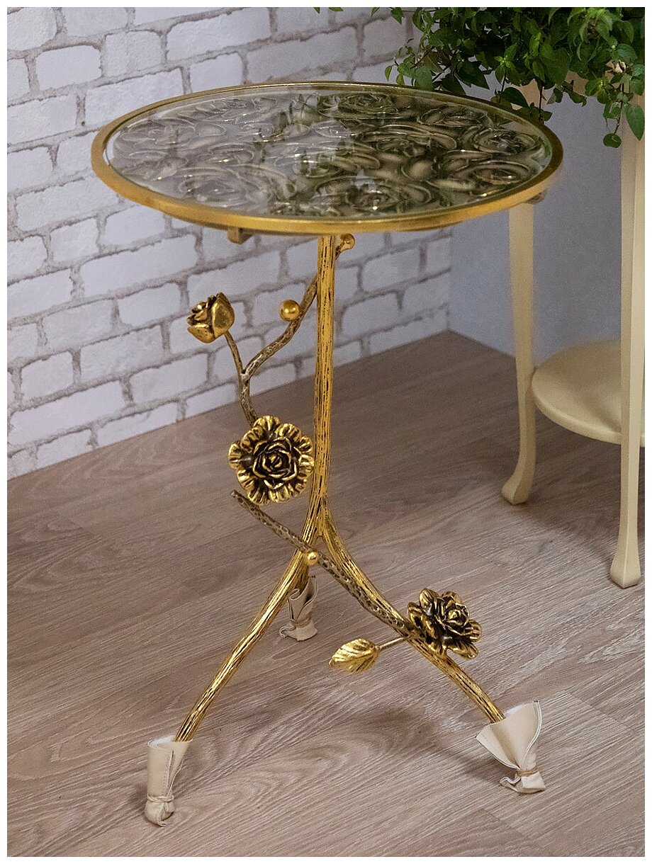 Надоели безликие современные интерьеры? Добавьте новых красок и индивидуальности в дизайн своей комнаты, наполнив его приятными деталями. Наслаждайтесь горячим кофе по утрам и какао вечером в своей, полной уюта, вселенной.Декоративный столик BOGACHO Роза Прованса Сангрия бронзовый, со стеклянной столешницей и основанием из кованой стали, с фигурками роз из мрамора удачно будет смотреться в гостиной, на балконе или веранде. Изделие производится вручную: ножки выкованы из стали нашими кузнецами. Столешнице хочется уделить особое внимание, поскольку рисунок наносится вручную. Из-за этого каждое изделие получается по-своему красиво и необычно, наполнено настроением и душевными порывами своего мастера.Поверьте, всем знакомым захочется узнать, из какого путешествия вы привезли такую роскошь.
