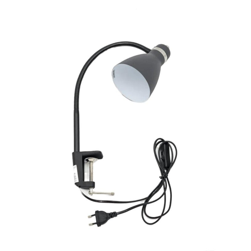 Настольная лампа с креплением на струбцине очень удобна для чтения, письма, рукоделия. Благодаря струбцине, светильник легко установить не только на обычном столе, но и на поверхности из любого твердого материала, наклоненной под произвольным углом. Плафон с основанием соединяет гибкая ножка, позволяющая направить поток света наиболее удобным образом. Устройство занимает минимум места. Возможность случайного падения лампы практически исключена, поскольку струбцина надежно ее фиксирует. Металлический светильник долго сохраняет эстетичный вид. Для поддержания чистоты достаточно периодически протирать плафон сухой или слегка влажной салфеткой.