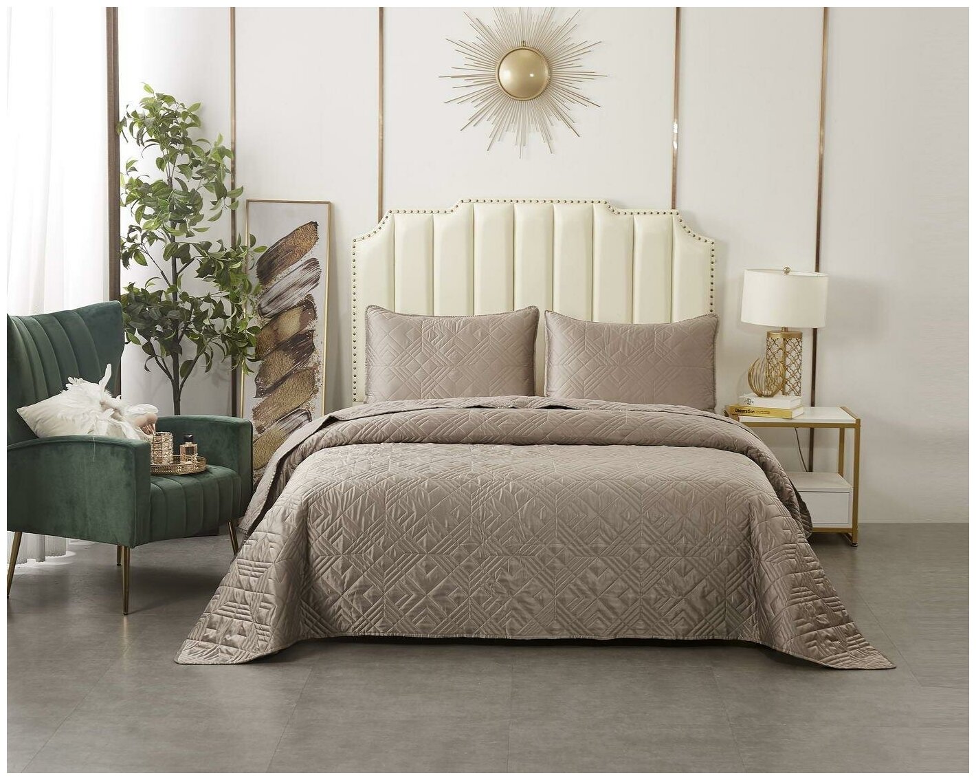Покрывала Себастьян гармонично впишутся в современное стилевое пространство: будь то прагматичный минимализм, динамичный хай-тек или респектабельная неоклассика. Они представлены в нескольких цветах: антрацит, синий, бежевый, пепельная роза, серый и шоколад. Покрывала изготовлены из атласа – это очень плотный, красивый и эффектный материал, мягкий и шелковистый на ощупь. Стеганые покрывала Себастьян не только эффектны, но и практичны, они не требуют специального ухода, хорошо держат форму даже после долгого использования, не тянутся и не линяют.