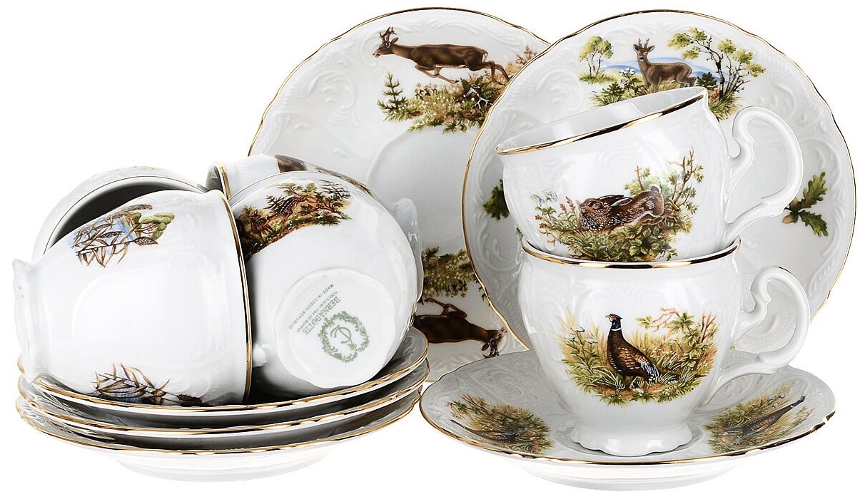 Чашка 170 мл с блюдцем 140 мм высокая Bernadotte Охотничьи сюжеты (6 шт.) Hoff