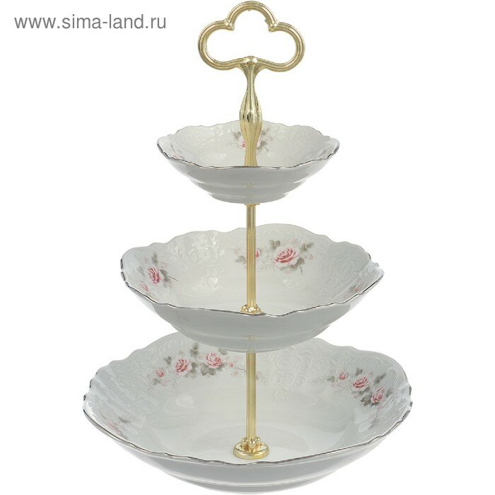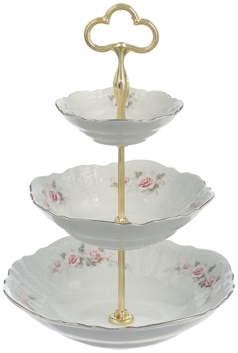 Этажерка для фруктов 3-х ярусная; "Bernadotte" декор "Бледные розы отводка платина" Hoff