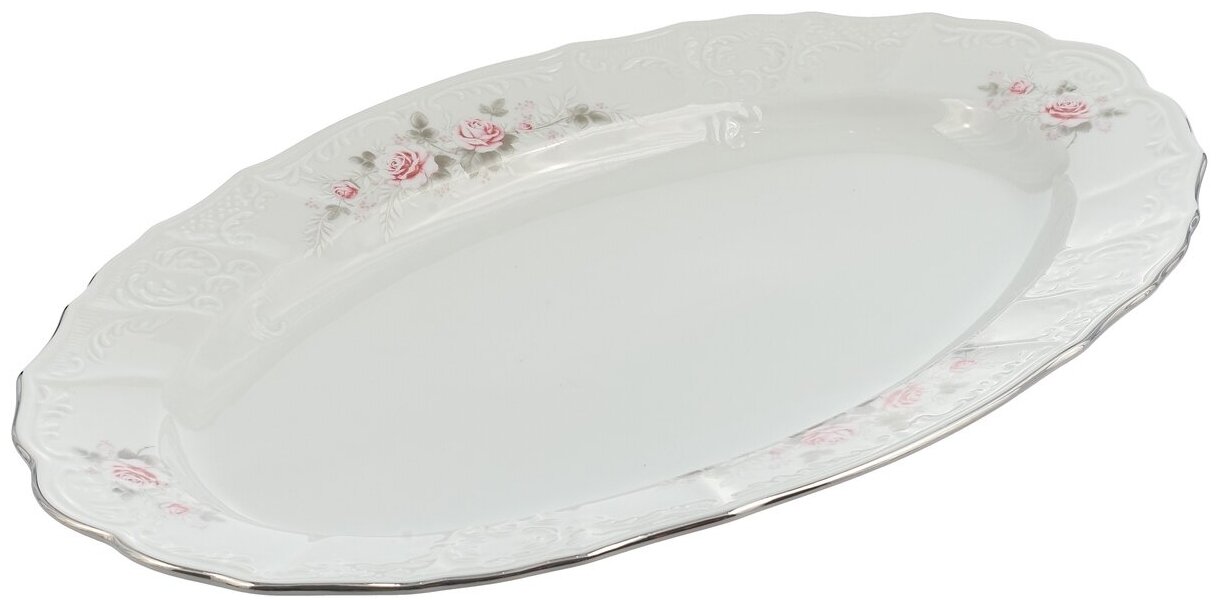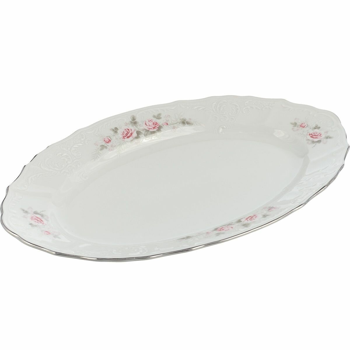 Блюдо овальное 39 см Bernadotte декор Бледные розы отводка платина Hoff