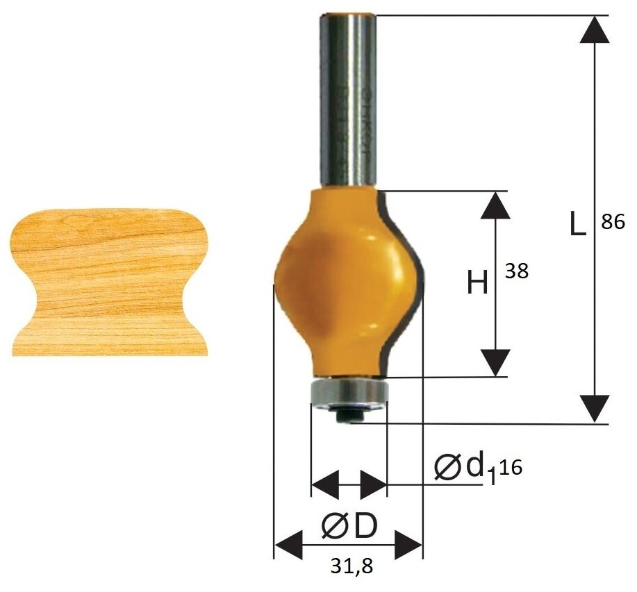 Фреза Энкор предназначена для чистовой обработки кромки и торца изделий из различных пород древесины. Используется совместно с фрезерными машинами и фрезерными станками. Фреза позволяет получать разнообразные виды профилей кромки изделий, как по отдельности, так и в комбинациях. Также возможно использование отдельных частей рабочей кромки фрезы для получения декоративного профиля. Рекомендуется использовать фрезерные машины мощностью не менее 1.6 кВт. Фреза изготавливается из высококачественных материалов и характеризуется точно рассчитанной геометрией режущей кромки, обработанной алмазными дисками до точности биения 0.02 мм. Структура твердого сплава гарантирует его высокую стойкость к выщерблению по режущей кромке и, следовательно, качество обработки изделия.