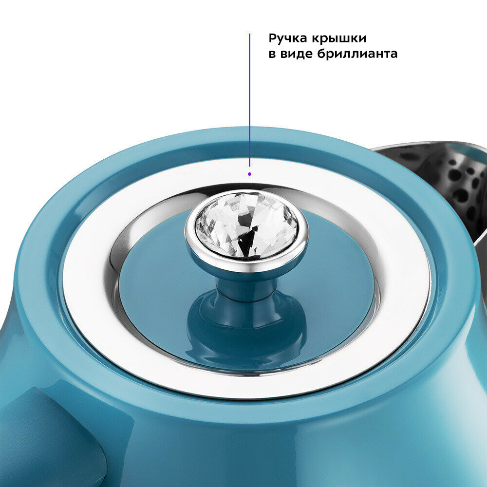 Чайник моментально притягивает взгляды, и это неудивительно, ведь ручка крышки чайника выполнена в виде бриллианта. Изысканно, не правда ли?Смотри также характеристики.