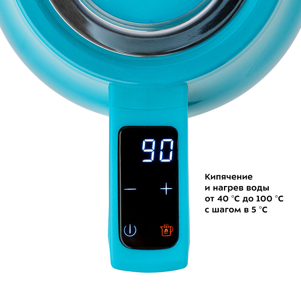 | Прочие особенности и свойства | На ручке чайника расположена панель управления с LED-дисплеем. С помощью кнопок «+» и «-» установите нужный температурный режим. Кнопка «Старт/Стоп» начнёт или остановит работу. Также у чайника есть функция поддержания температуры в течение 2-х часов. |