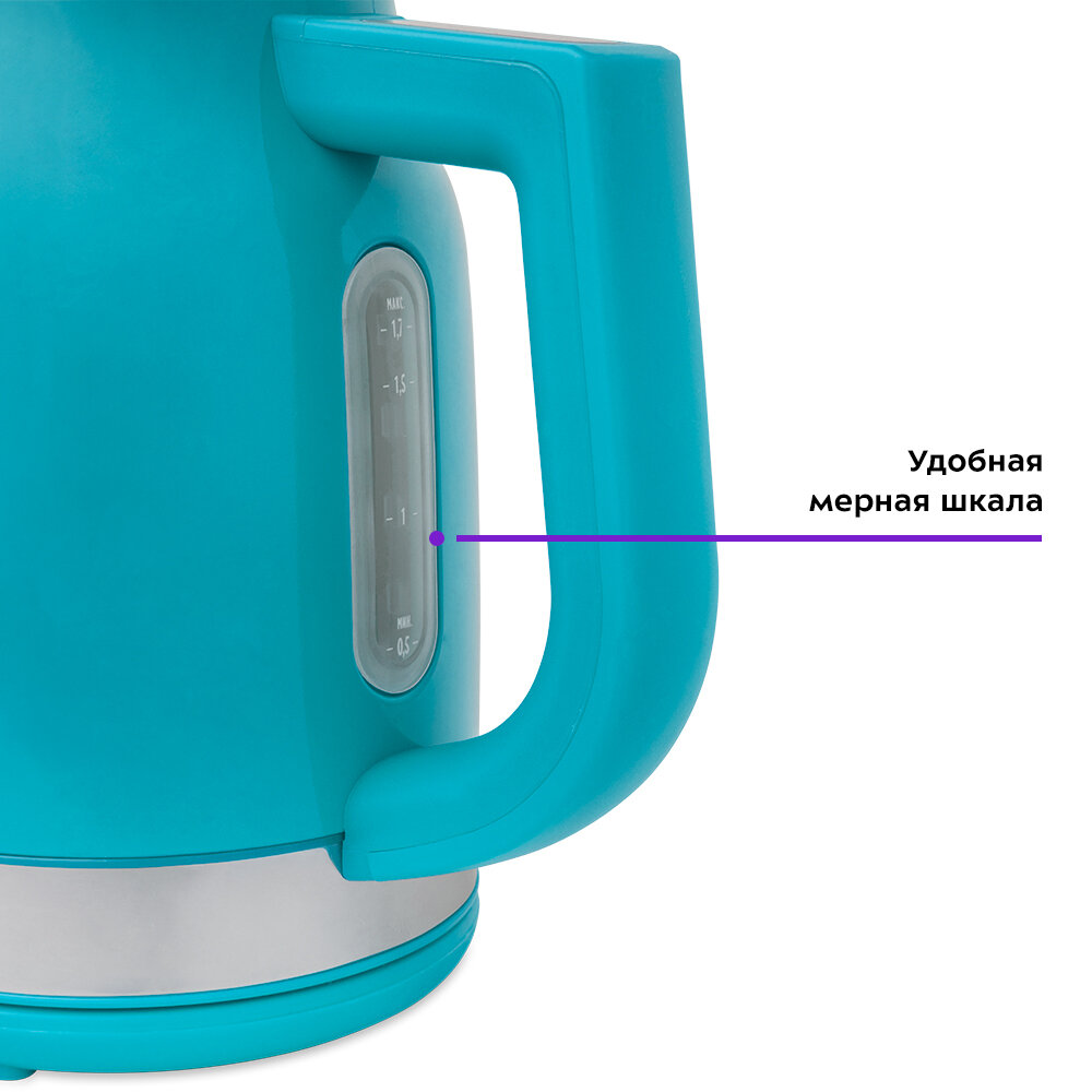 Мощный и вместительный чайник отлично подойдёт для тёплых встреч с семьёй и друзьями. За один раз в чайнике можно вскипятить до 1,7 л воды. Этого хватит, чтобы приготовить горячие напитки на большую семью!Управление в 1 нажатие