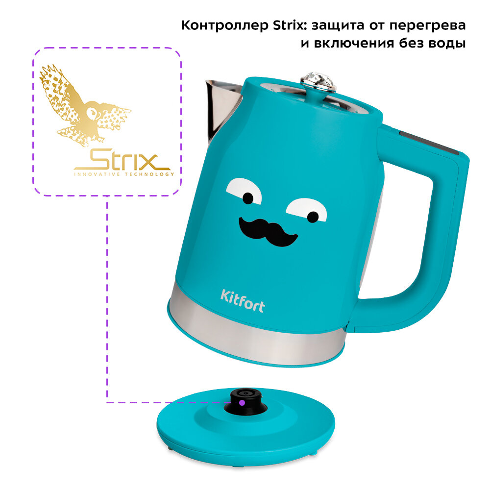 Чайник оснащён контроллером Strix - №1 среди поставщиков компонентов для электрочайников. Он устраняет риски короткого замыкания и возгорания прибора. Обеспечивает защиту при закипании, при включении чайника без воды.Просто и удобно!