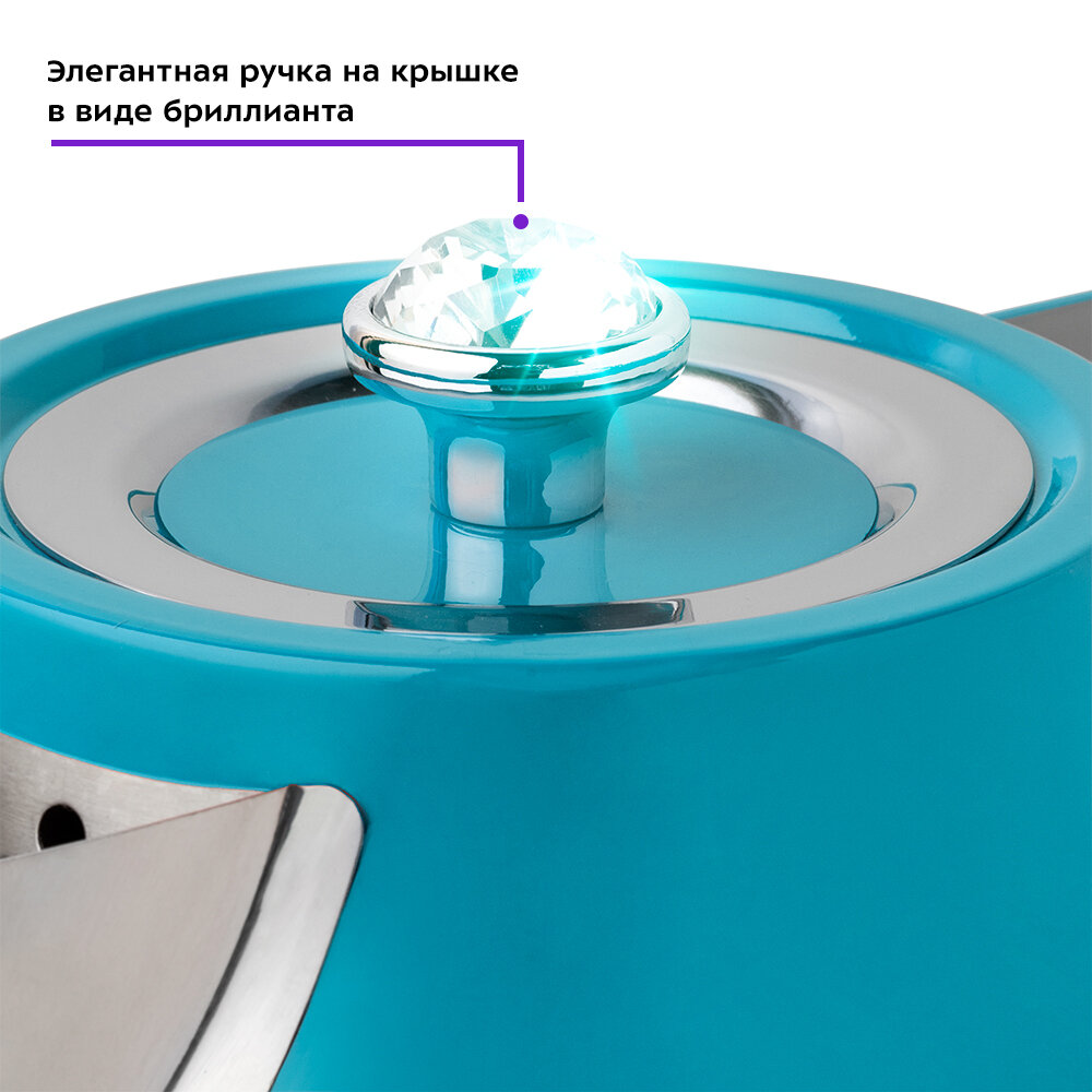 Чайник моментально притягивает взгляды, и это неудивительно, ведь ручка крышки чайника выполнена в виде бриллианта. Изысканно, не правда ли?Отклеивающийся креативный стикер!