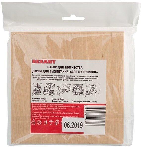 | Комплектация | 5 досок для выжиганиятигр, самолет, машина, корабль парусник, космос |
