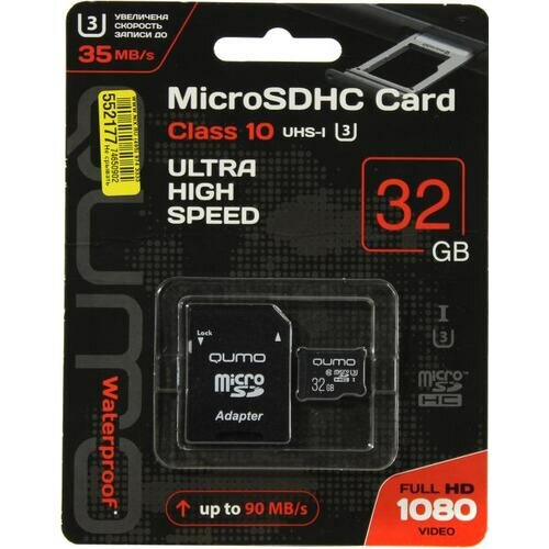 Карта памяти 32GB Qumo MicroSDHC Class 10 UHS-I U3 SD adapter QM32GMICSDHC10U3