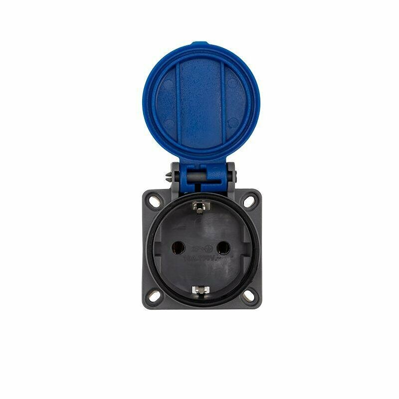 Электрическая влагозащищенная настенная розетка из каучука предназначена для использования в сложных эксплуатационных условиях с высокой влажностью и широко применяется в быту, производстве и строительстве. Она имеет степень защиты IP44 — защита от капель и брызг воды, попадающих под любым углом, и может быть применена для организации электропитания, в том числе под открытым небом. В дождь под навесом. Не допускается эксплуатация погружением в воду. Она легко монтируется, имеет высокую надежность и долгий срок службы. Розетка оснащена защитной крышкой. Для обеспечения безопасности все детали, соприкасающиеся с токоведущими частями, выполнены из огнеупорного материала, устойчивого к температуре до +850 ⁰С.