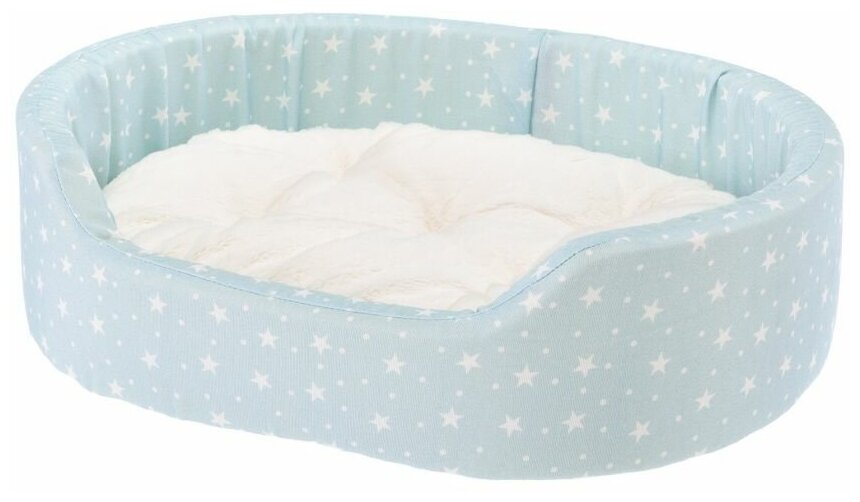 Dandy - мягкая софа овальной формы из х/б ткани.Это новинка из линейки товаров "PUPPY" от Ferplast. Вы узнаете эту линейку по характерным пастельно-голубым или пастельно-розовым оттенкам, предназначенным специально для самых маленьких.Оснащена бортиками, спереди бортики занижены для удобного захода, имеет внутреннюю подушку, которую можно снять для стирки.Внутренняя подушка в комплекте; подлежит машинной стирке при температуре 30С.Размеры:45 х 35 х 13 см.